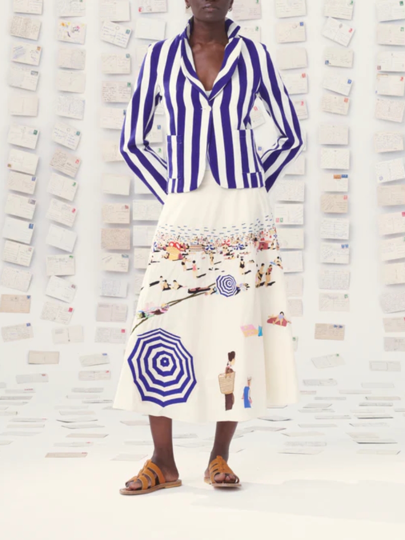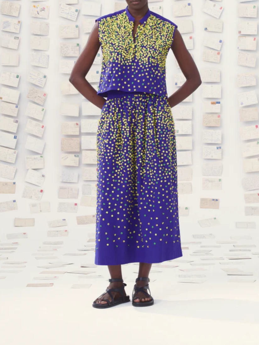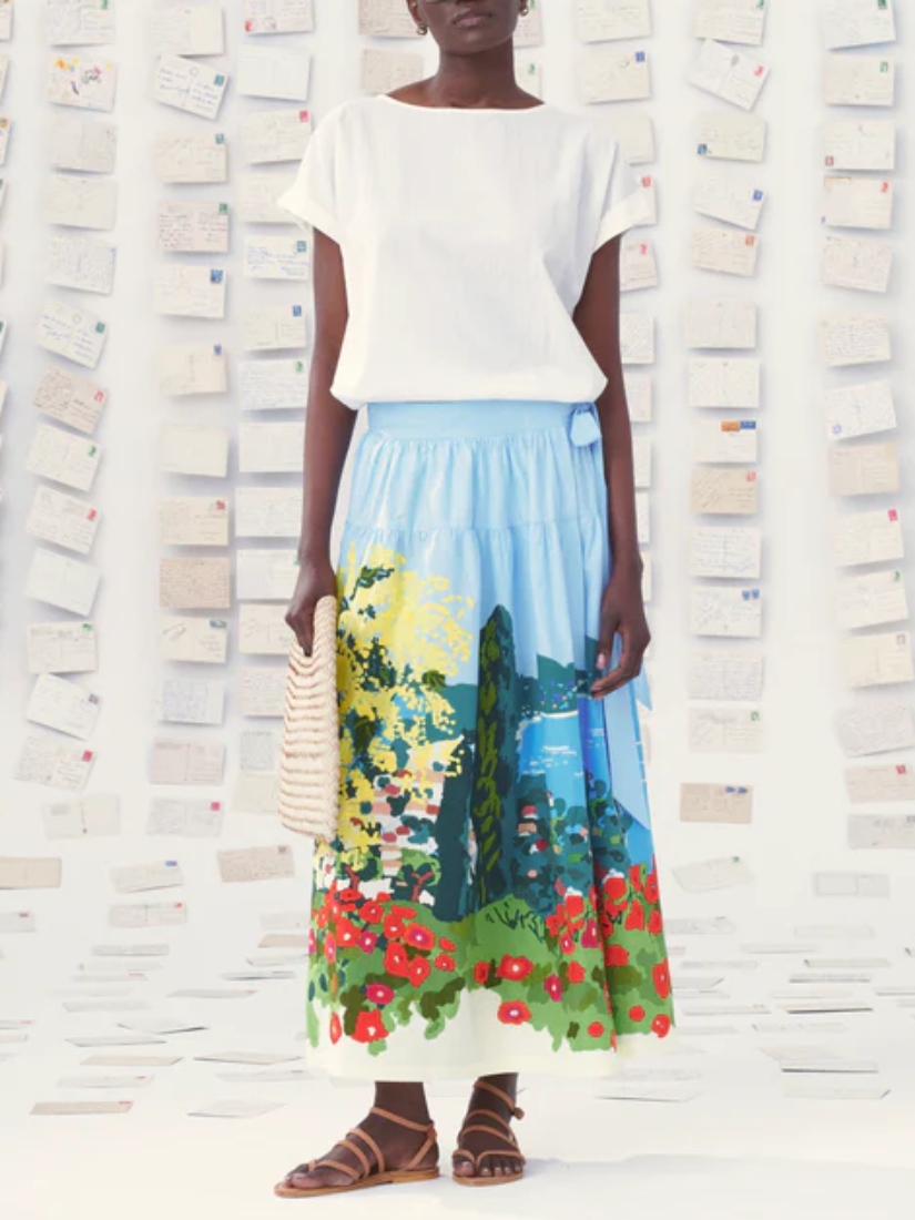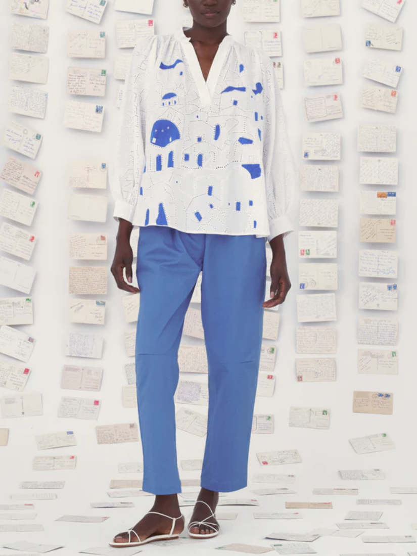 今季は、デザイナーの祖母の家で見つかった古いポストカードから着想を得て、プロヴァンスとキクラデスの風景や色彩を、刺繍やプリントで軽やかに描き出しています。旅するように心を解き放つ、詩的でやさしいコレクションをぜひお楽しみください。