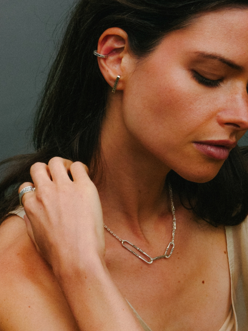 刻まれたフレーズは、それぞれの物語に静かに重なり、心の奥へとやわらかく届いていく。目には見えない風のように、その存在はさりげなく、けれど確かに感じられるもの。「LE VENT」のジュエリーは、気配のように寄り添いながら、日々にほのかな揺らぎと余韻をもたらします。あなたの中に、新しい風がそっと吹き抜けるように。