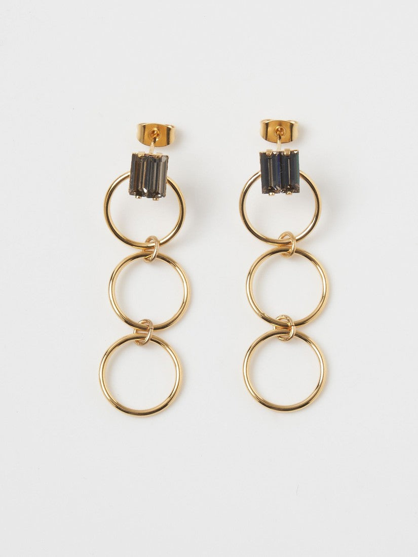 グレー、グリーン、バイオレットに光を反射するバゲットラインストーンが並んだジュエリーは、