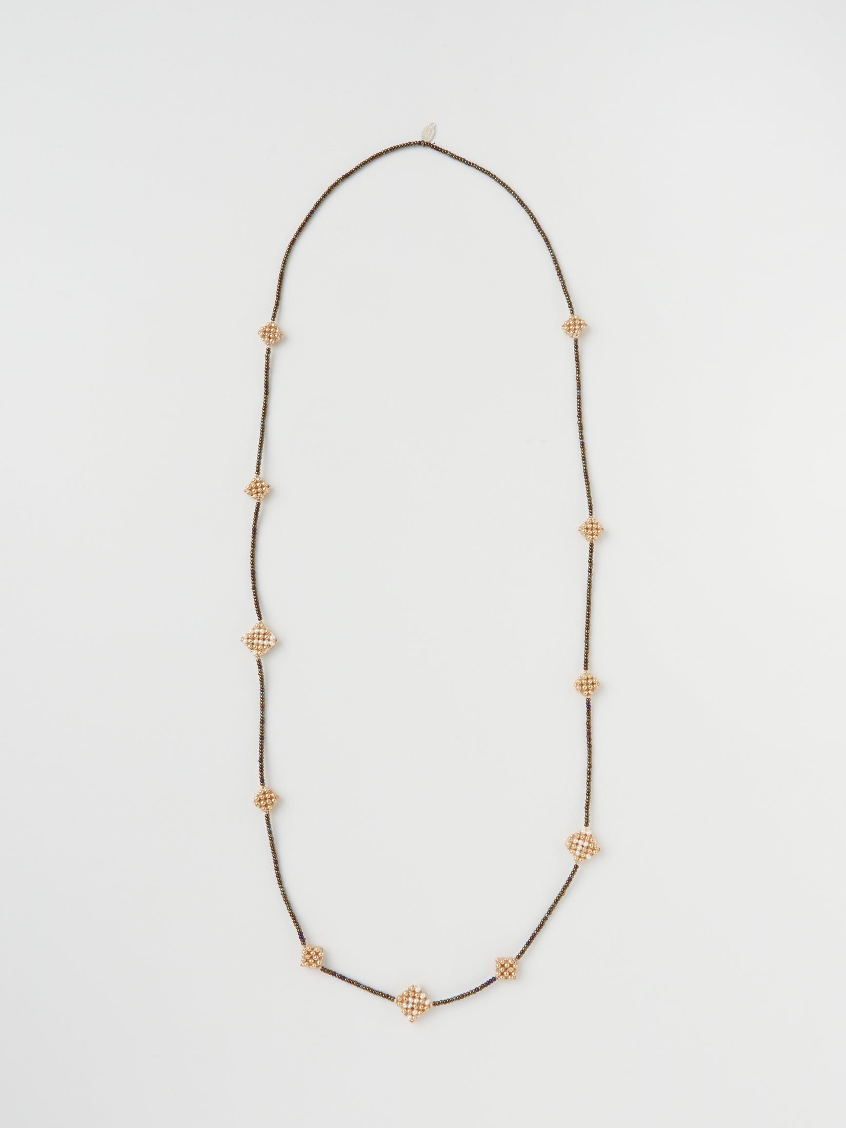 17世紀後半にアートとして認められ始めたムラノガラスビーズ・ボヘミアンクリスタル。その小さく光る美しい球体を使用し、スペシャルなアクセサリーを生み出すAprosio&Co(アプロジオアンドコー)。 ビーズ選びから始まり、それぞれのあるべきプロポーション、カラーにたどり着くまで何度も形を修正し、一つ一つ個別に時間をかけて考え作られる作品達は身に着けることでより美しく輝く。機械やコンピューターには生み出すことのできない、唯一無二の存在感。その可愛らしい世界の中に彼女の情熱が詰まっています。ぜひAprosio&Coの世界を堪能してみてください。