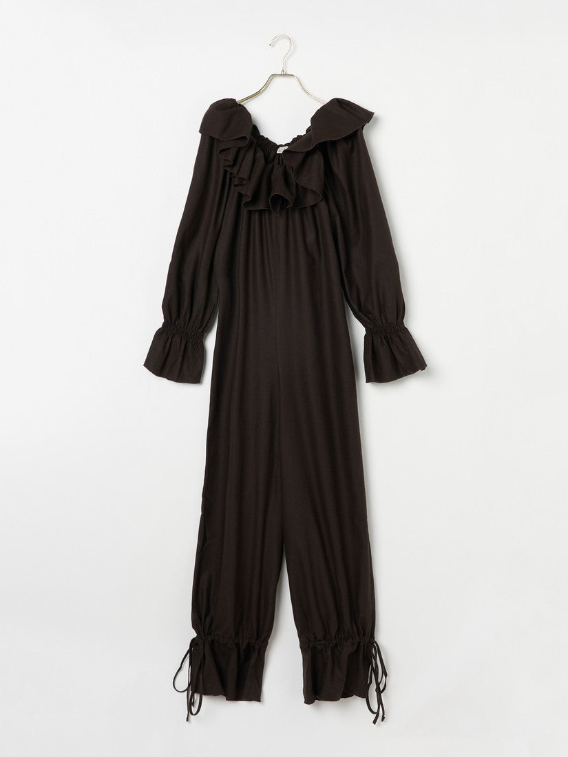 高級感のあるブラウンのベロア素材を使用したウェアやフリルが特徴的なジャンプスーツもBASERANGEらしく、リラックスしてご着用いただけます。