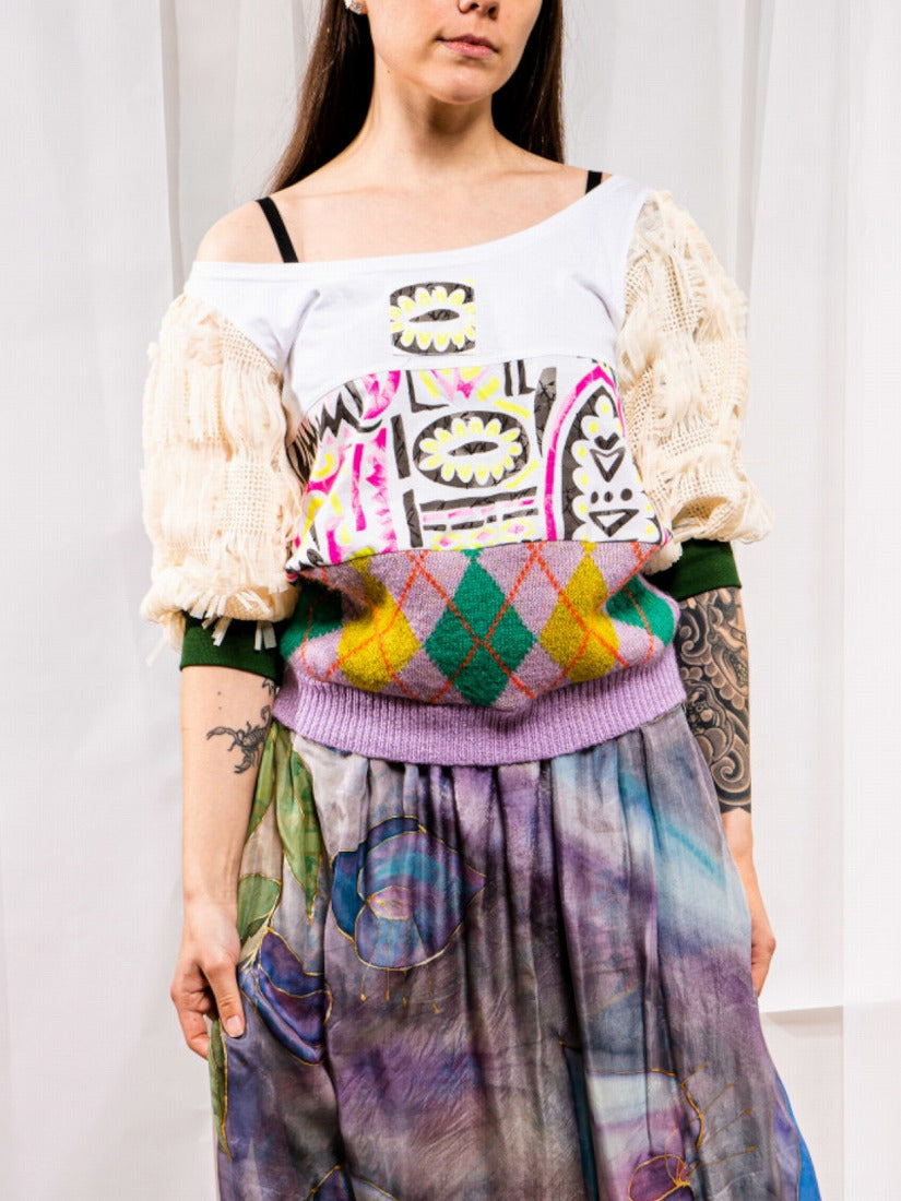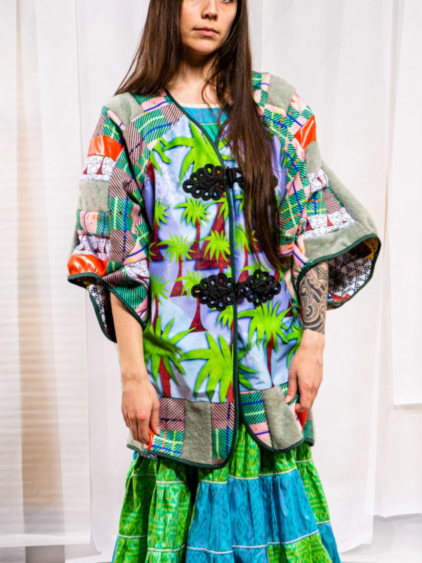 このコレクションでは、リサイクルされたヴィンテージスカーフを使用、模索を続けてリサイクルという形で再度価値を与えてきました。