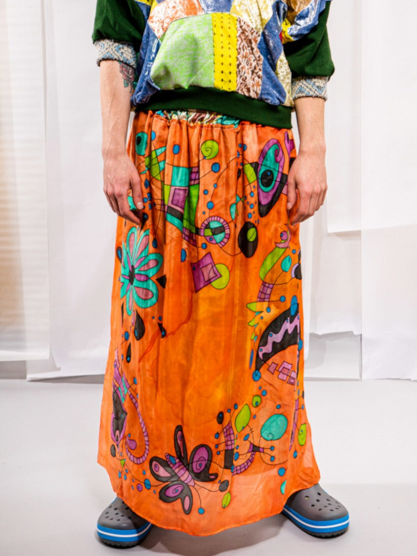 今シーズンは、シルクのスカーフにシルクペインティングを施し、その鮮やかで繊細な色合いに注目しました。デザインに対する素朴なアプローチ、そしてハンドメイドの特徴を生かしたアイテムです。