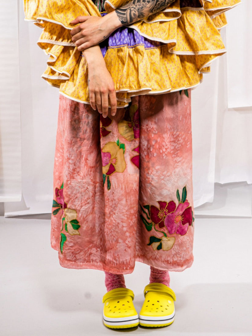 また、シルクペインティングはタイダイ同様に伝統的な技法です。タイダイも、まったく同じ模様になることはなく、染め師でさえも同じ色を再現できないことが多い。そこに”手づくり”の良さを感じます。