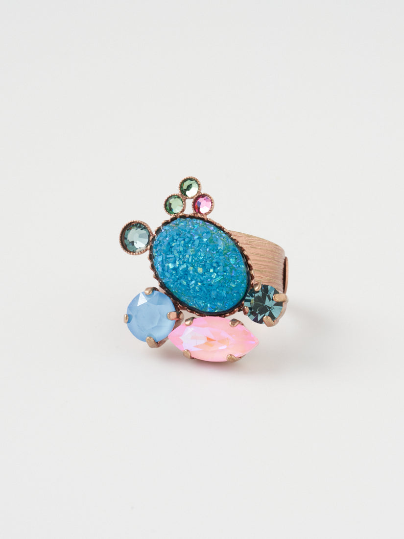 「アクセサリーは、スペクタクルである」と語り、大胆でオリジナリティにあふれるコスチュームジュエリーを作り上げる CLAUDINE VITRY(クロディーヌ・ヴィトリー)。 平穏な時々のノスタルジーや希望を彷彿とさせる2023年春夏コレクション。 フォービズムの数多くのアーティストたちが地中海とその素晴らしい光を見出した1900年代。 ピンク、ブルー、グリーン、イエロー、レッドが新しい色のハーモニーを生み出した彼らの視線を通して、地中海の幸福感に溢れたきらきらと輝くまばゆいばかりの風景を描く。