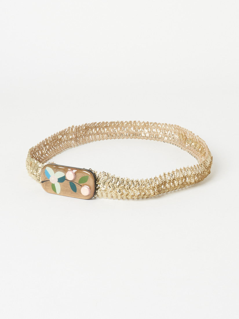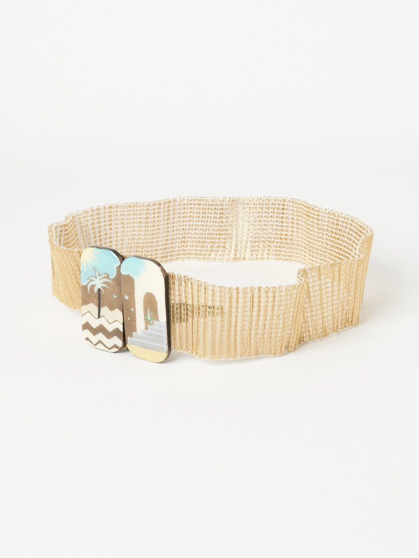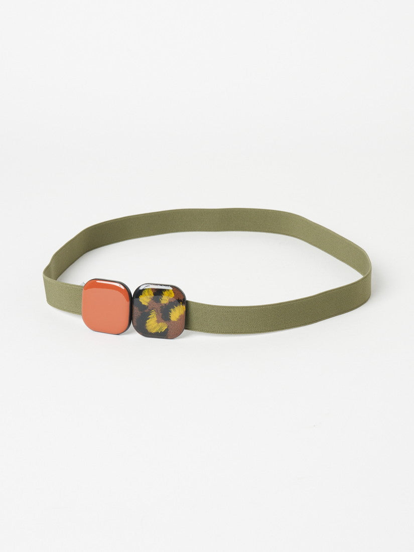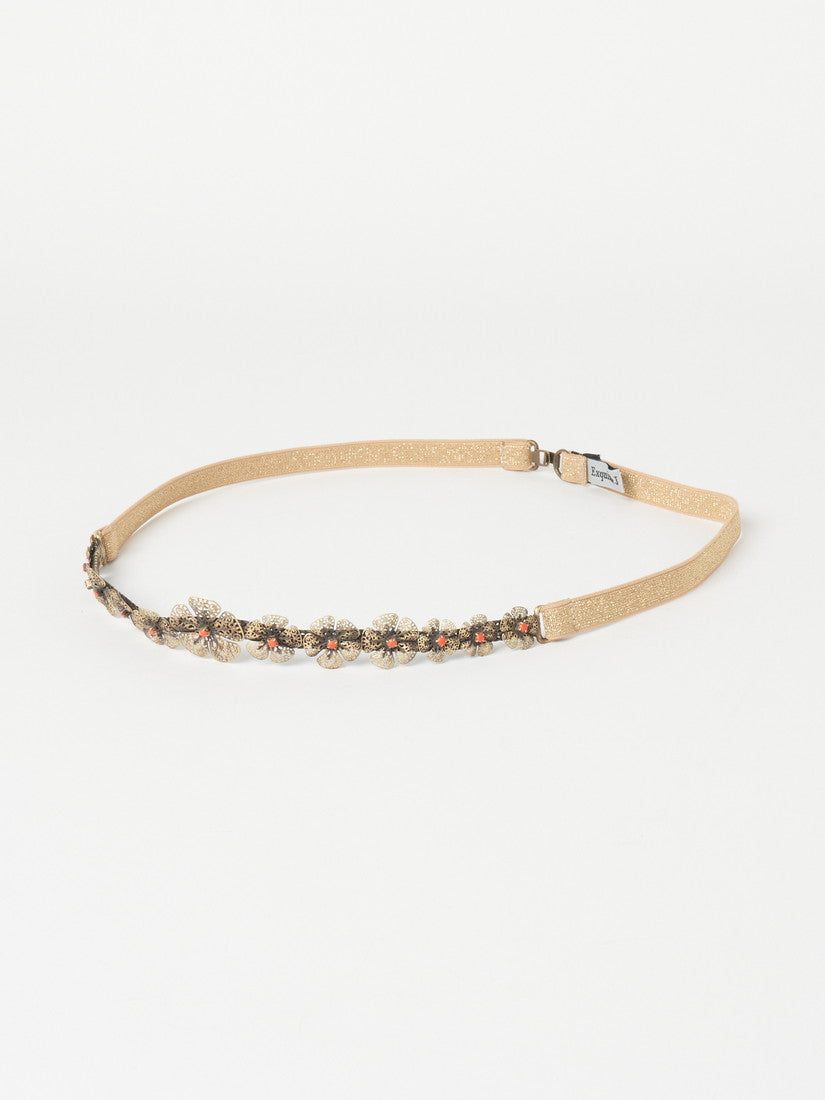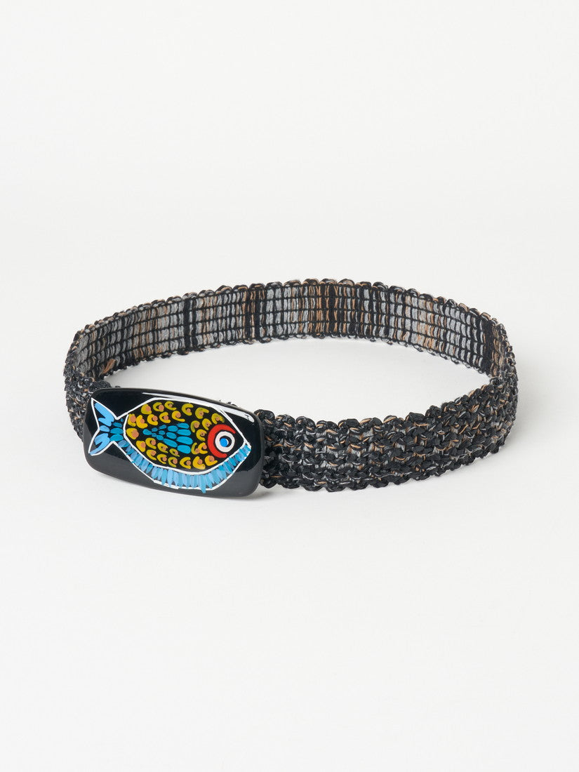 ストレッチのきくベルトを独創的に飾るのは、レジンでコーティングされた花や魚、美しい景色や幾何学模様の数々。メタルの透かし模様の花やラインストーンがきらっと光るレトロなデザイン。