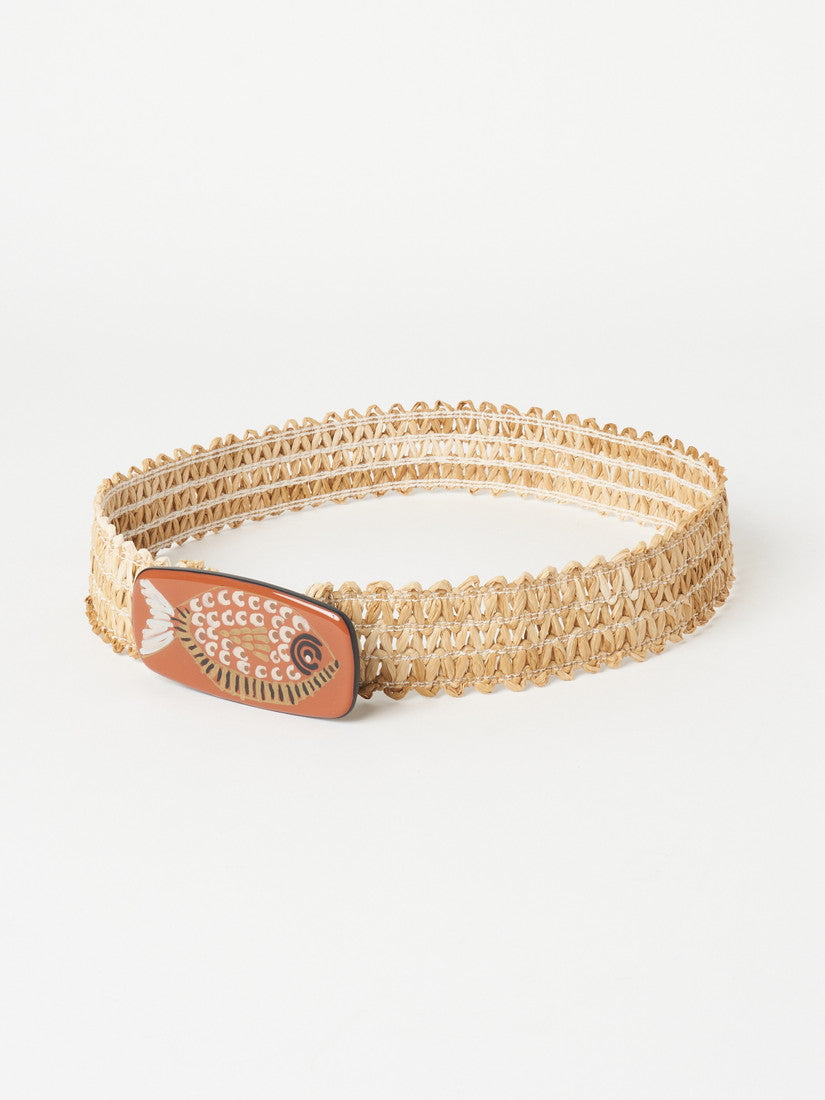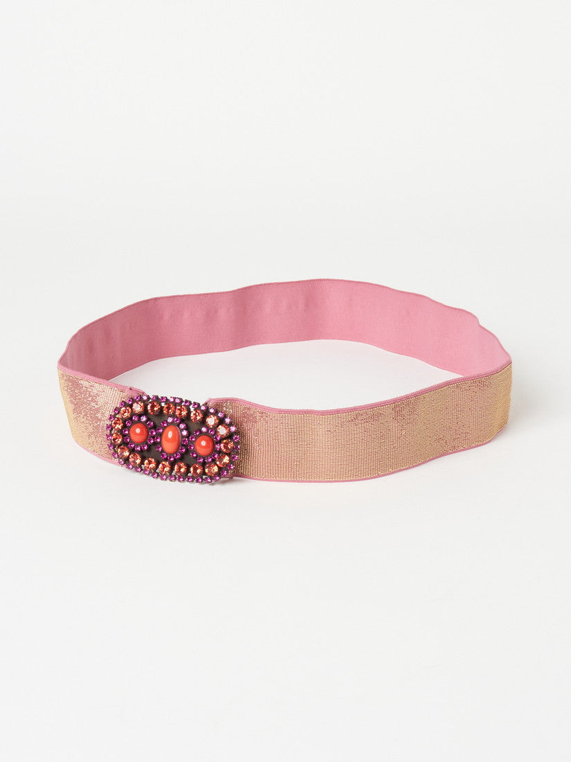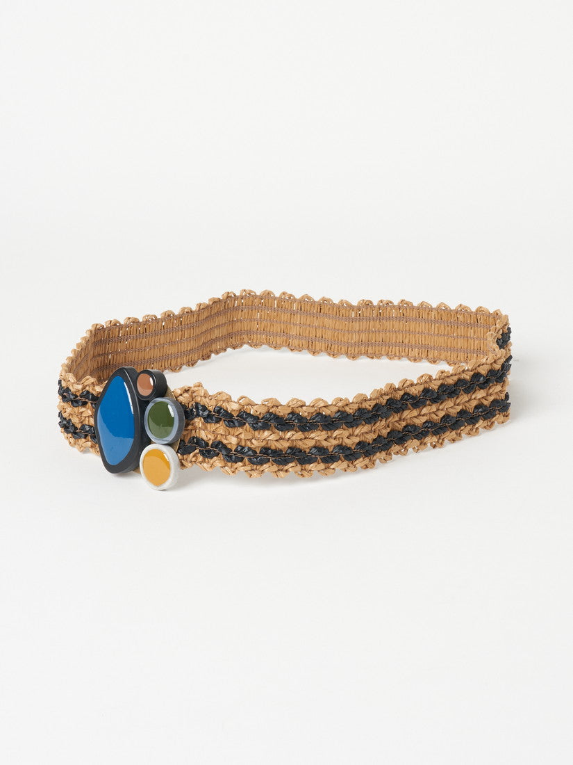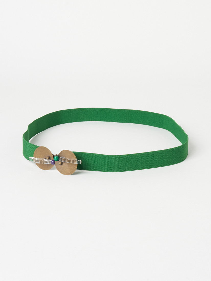 ストレッチのきくベルトを独創的に飾るのは、レジンでコーティングされた花や魚、美しい景色や幾何学模様の数々。メタルの透かし模様の花やラインストーンがきらっと光るレトロなデザイン。