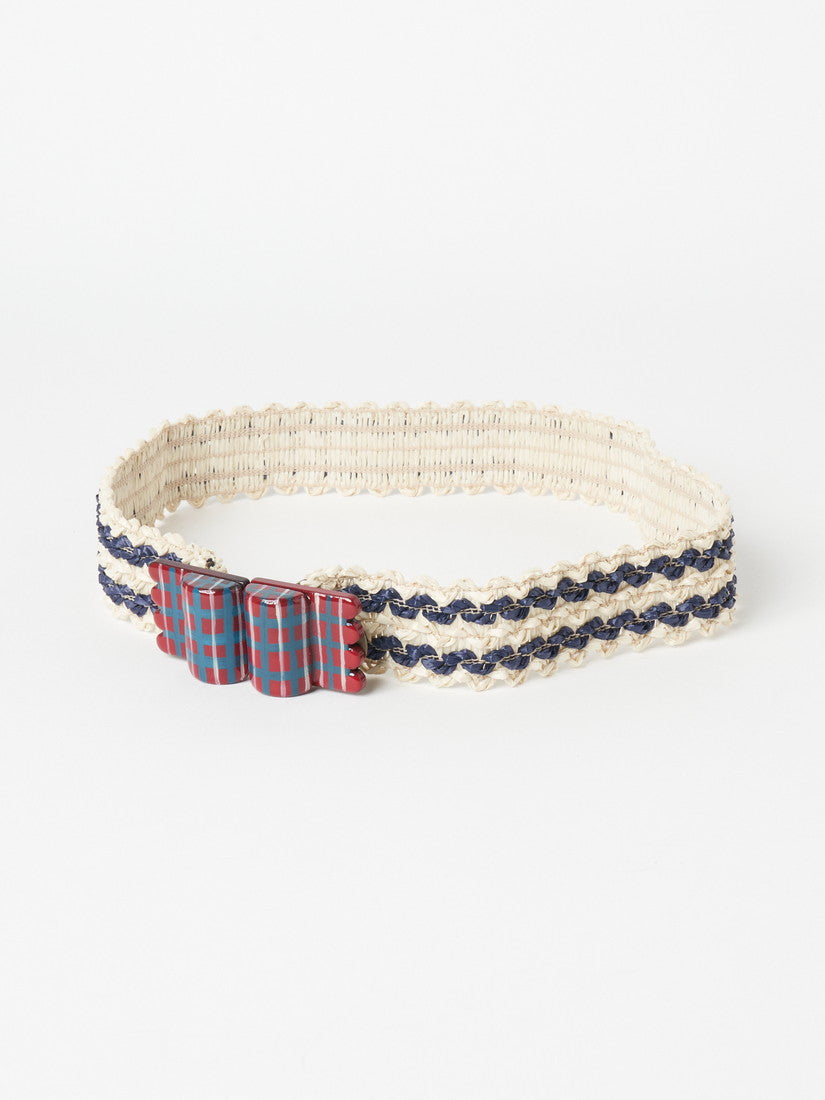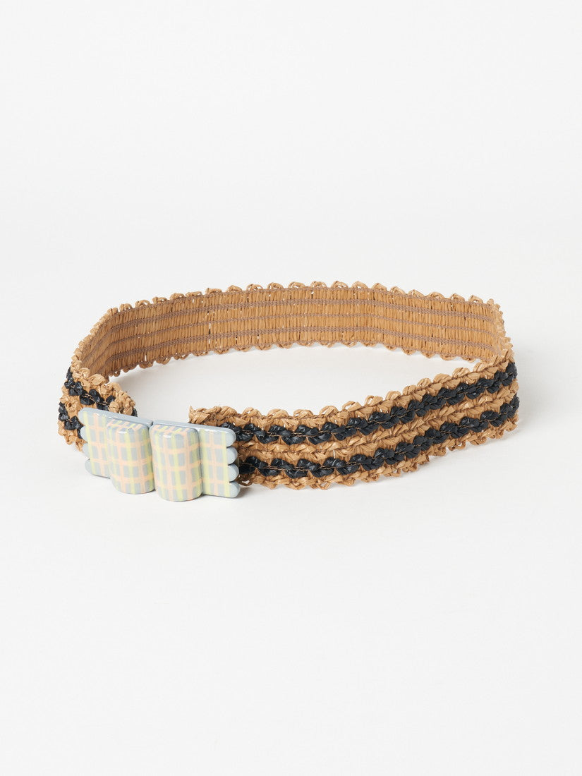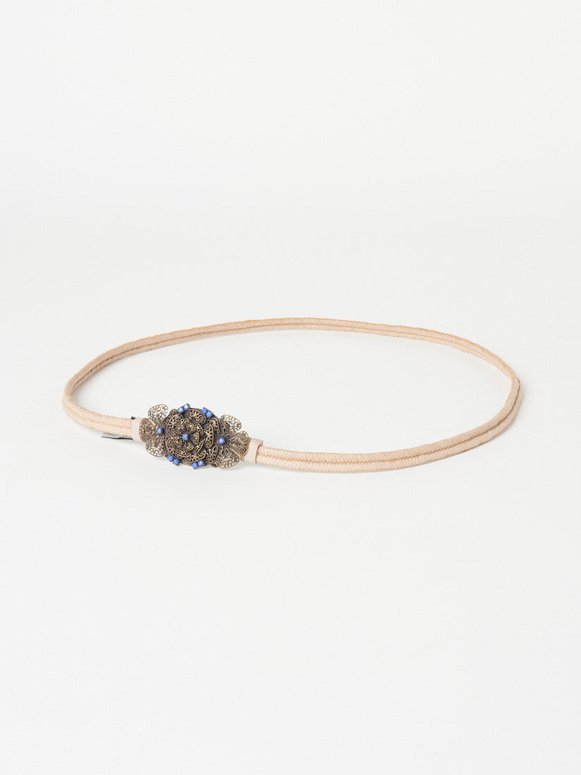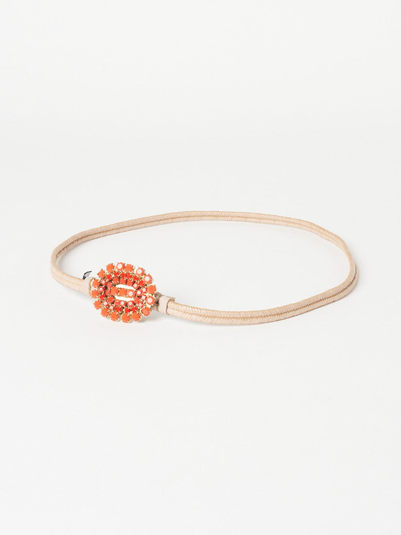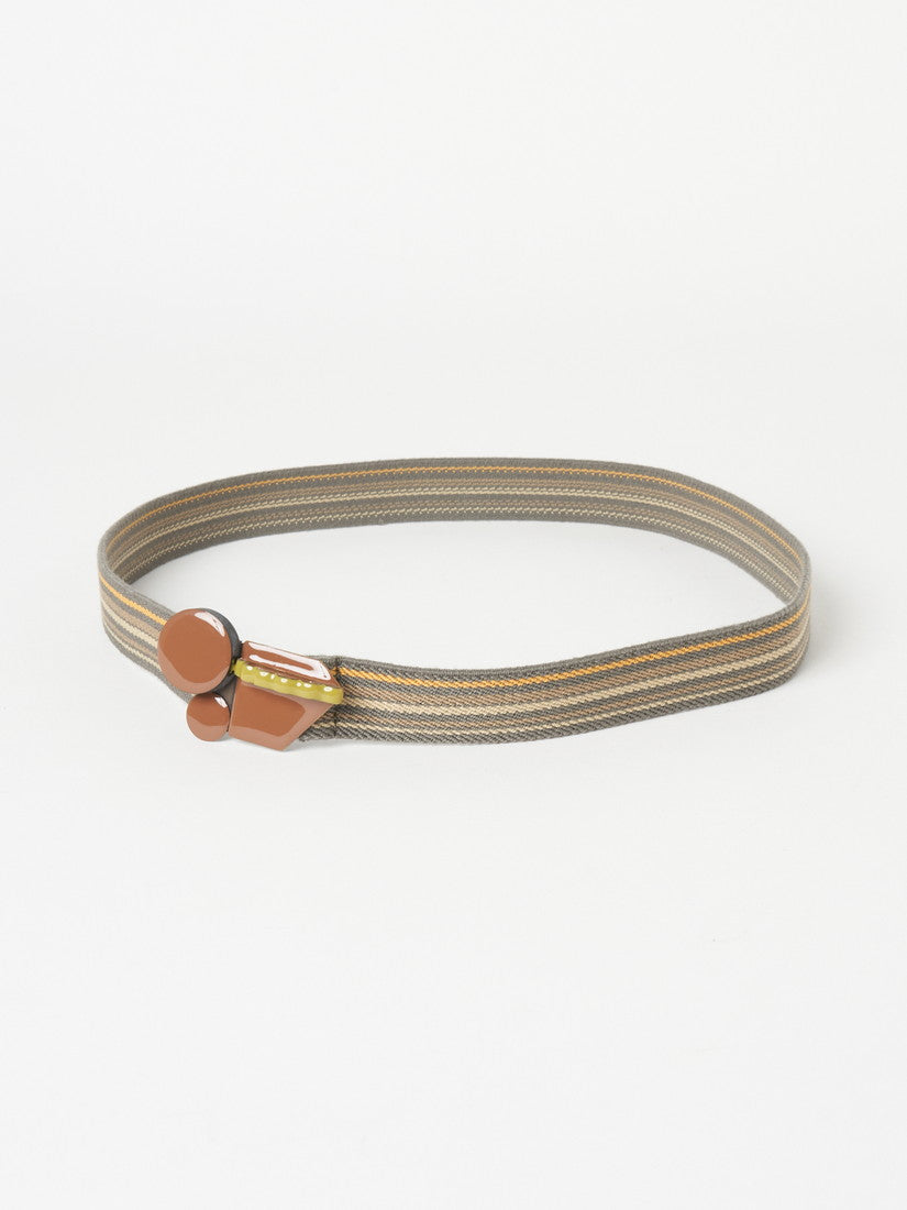 ストレッチのきくベルトを独創的に飾るのは、レジンでコーティングされた花や魚、美しい景色や幾何学模様の数々。メタルの透かし模様の花やラインストーンがきらっと光るレトロなデザイン。