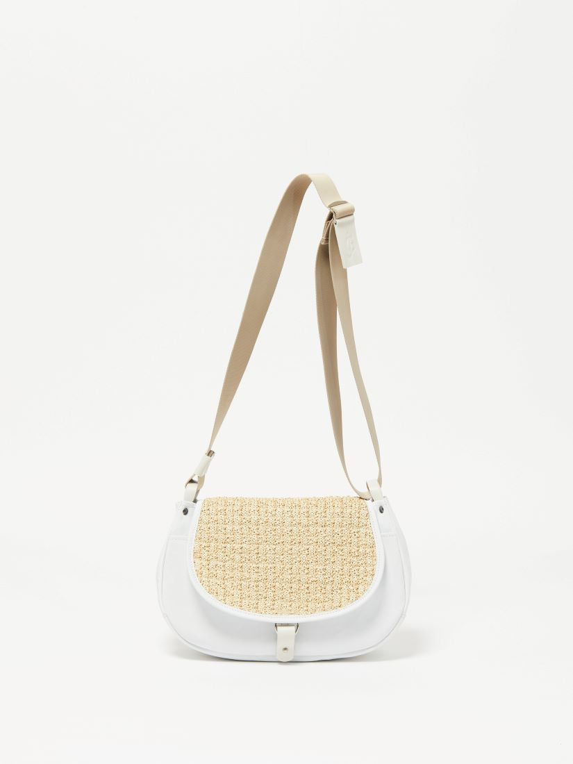 夏のオールホワイト、素敵だけどちょっと物足りない、そんなときにはビビットな足し色がおすすめ。