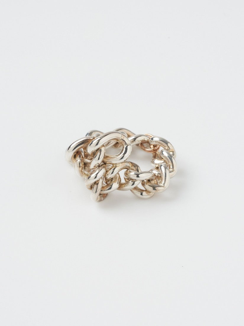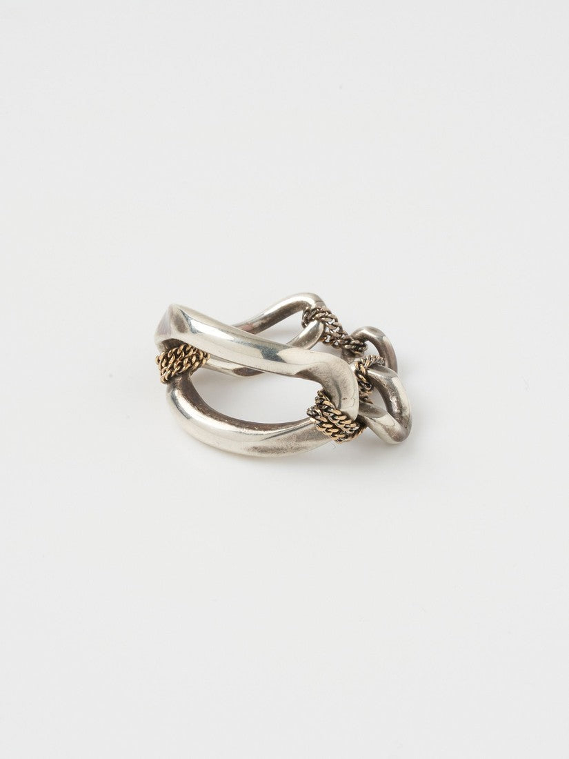 シルバーとゴールドのコンビで作られたCAFCA誕生当初から様々なタイプで発表し続けられるブランドのアイコンともいえる「チェーンリング」。 様々なデザインのオリジナルチェーンから自分のお気に入りを選び、手に取ると:CAFCAならではの個性で、強く自分らしい美しさをもらえます。 ユニセックスで使える、デイリーアイテムとして。 シルバーと18Kゴールドがミックスされたタフなリングは、日々のコーディネートにそっと寄り添いエッジを加えてくれます。