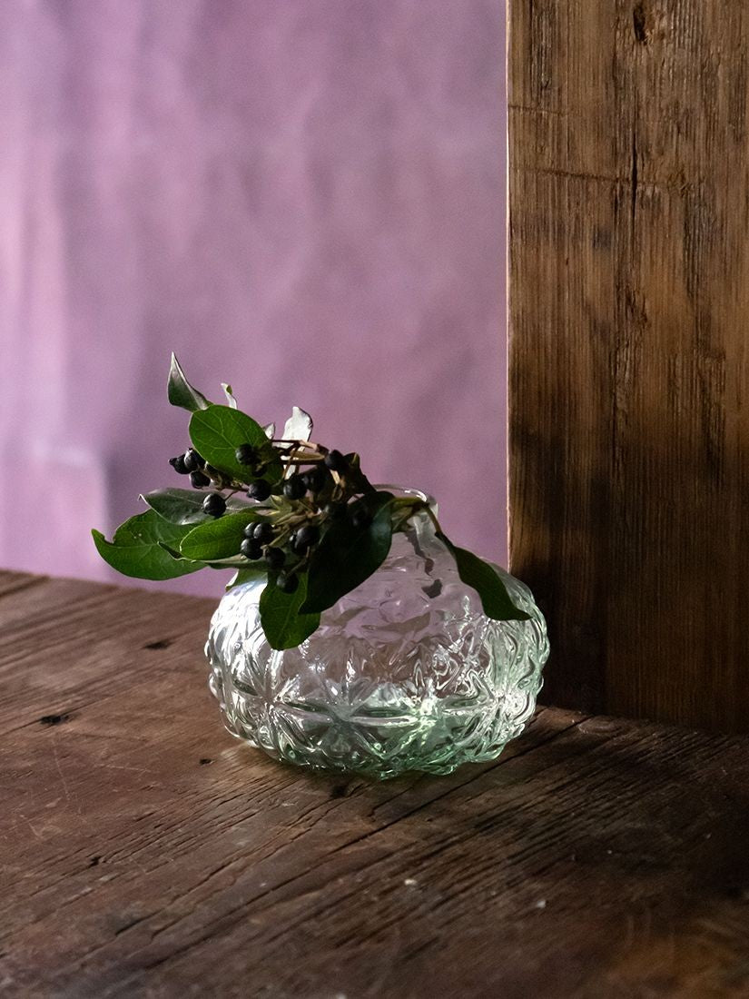 デザイナーは、彫刻の型を制作する職人でもあるセバスチャン・ノビル。幼い頃からガラスに魅了されていたセバスチャンは、オリジナルデザインの他、自分の家族が代々持っている日用品などのヨーロッパで昔から愛用されてきた形に着目しました。そこに現代のデザイン、機能性を取り入れ、フランス、イタリアの伝統的な技法で100%リサイクルガラスで制作しています。