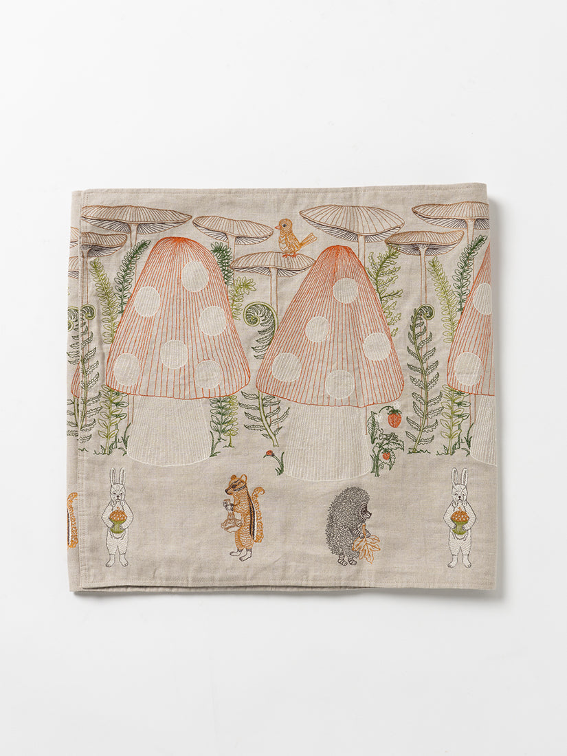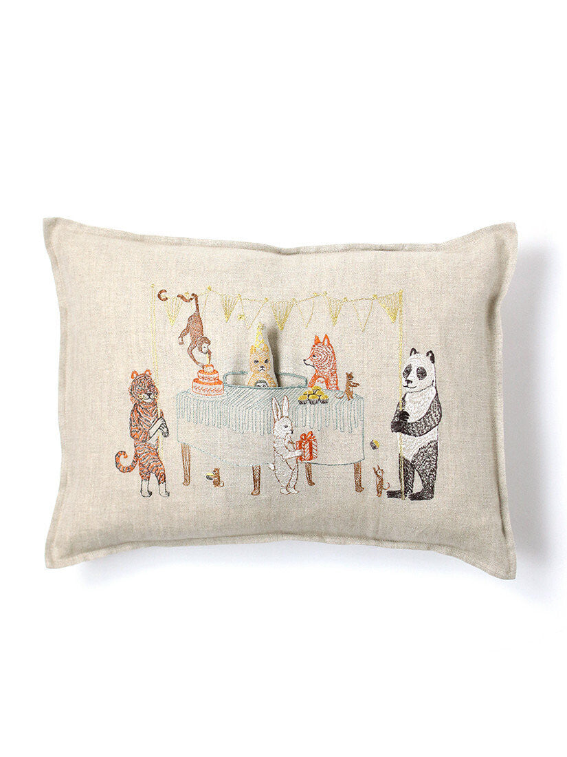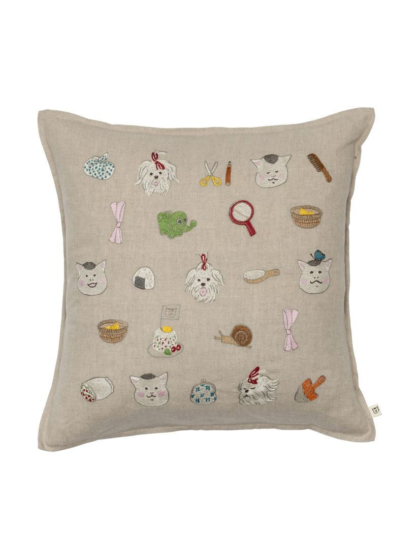 様々なデザインの中から、自分だけの物語を想像してコーディネートを楽しめるのもコーラル・アンド・タスクの楽しみ方のひとつです。ビスコースの糸を使用した刺繍は、上品な輝きが特長です。愛らしい動物たちや、植物やお花が華やかに咲き誇るクッションカバーは大人のインテリアにおすすめです。
