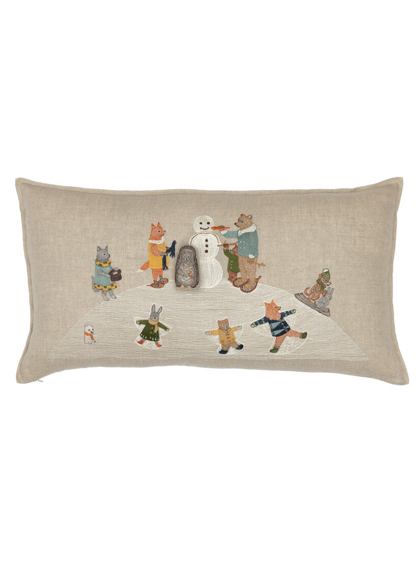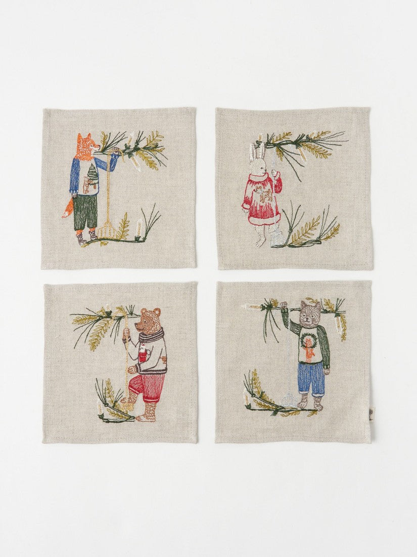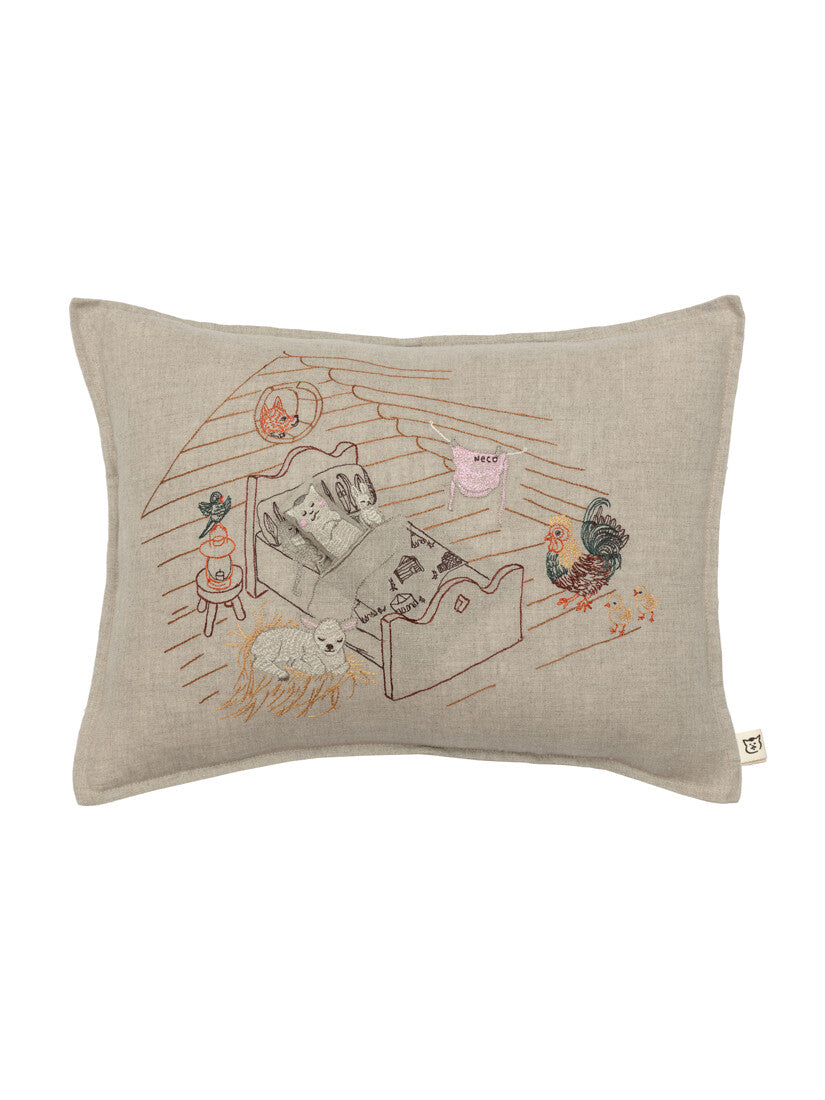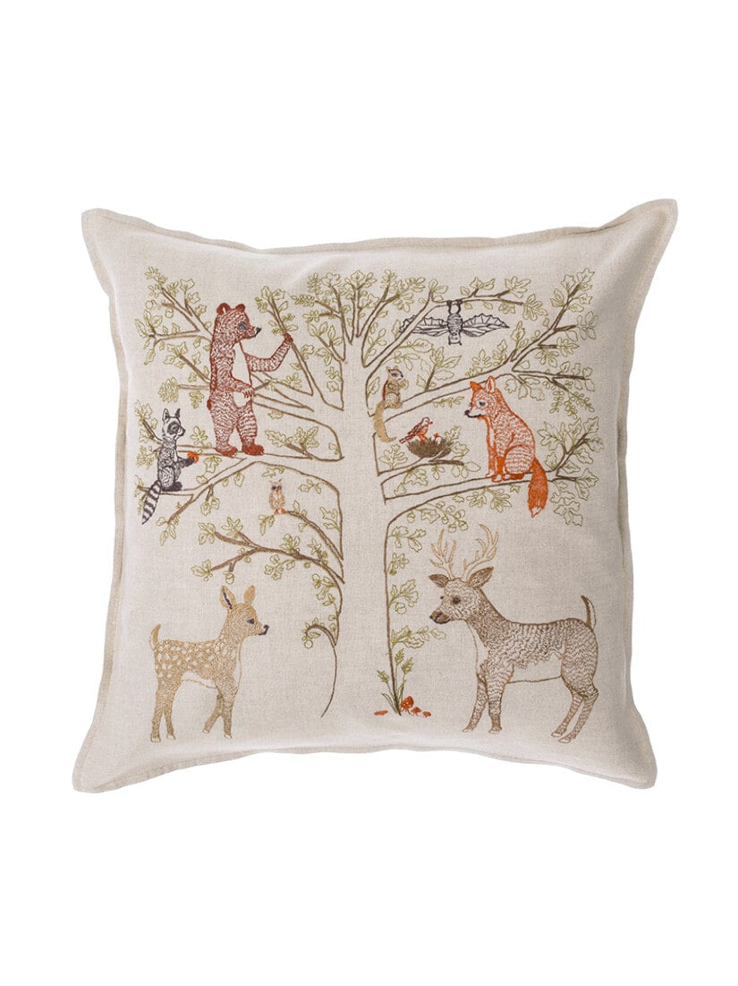 様々なデザインの中から、自分だけの物語を想像してコーディネートを楽しめるのもコーラル・アンド・タスクの楽しみ方のひとつです。ビスコースの糸を使用した刺繍は、上品な輝きが特長です。愛らしい動物たちや、植物やお花が華やかに咲き誇るクッションカバーは大人のインテリアにおすすめです。