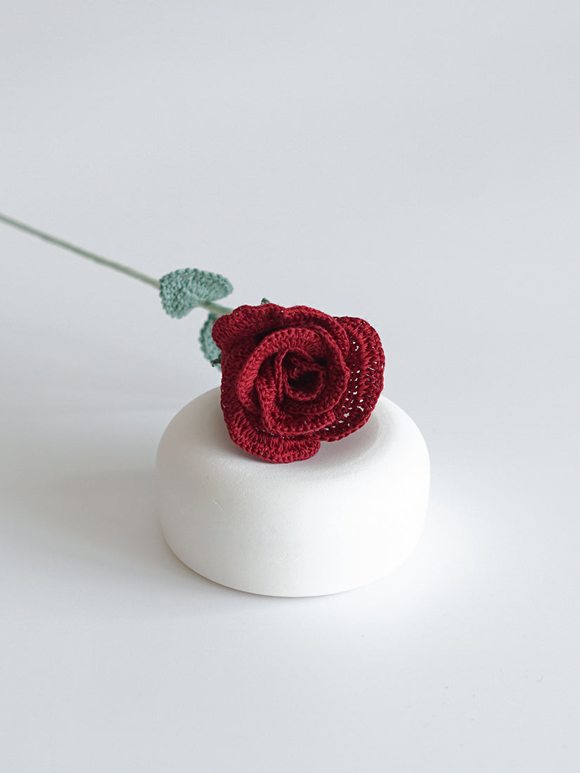 クロッシェフラワーは生花、プリザーブドフラワーとは違い、色褪せることなく、いつまでも楽しめるという魅力があります。お手入れが不要、湿度や温度の管理も簡単。 贈った時、いただいた時の思い出を永く大切に飾ることができます。