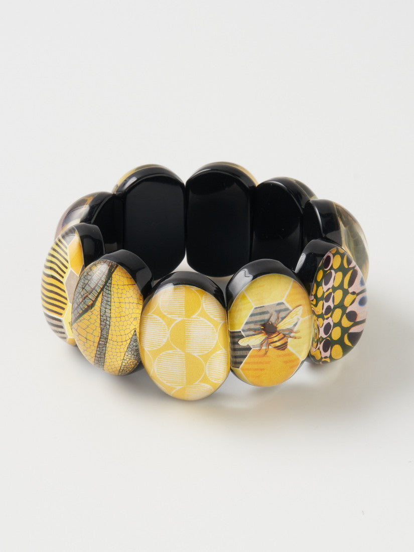 幾何学的なパターンを探求するのにぴったりな、神秘的なハチの世界。鮮やかなイエローとブラックのコントラストが現代的なデザインと調和し、ゴールドとクリーミーブラウンの豊かな色合いが自然の美しさを際立たせます。