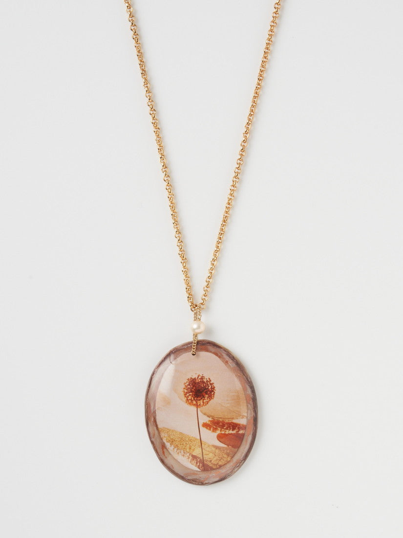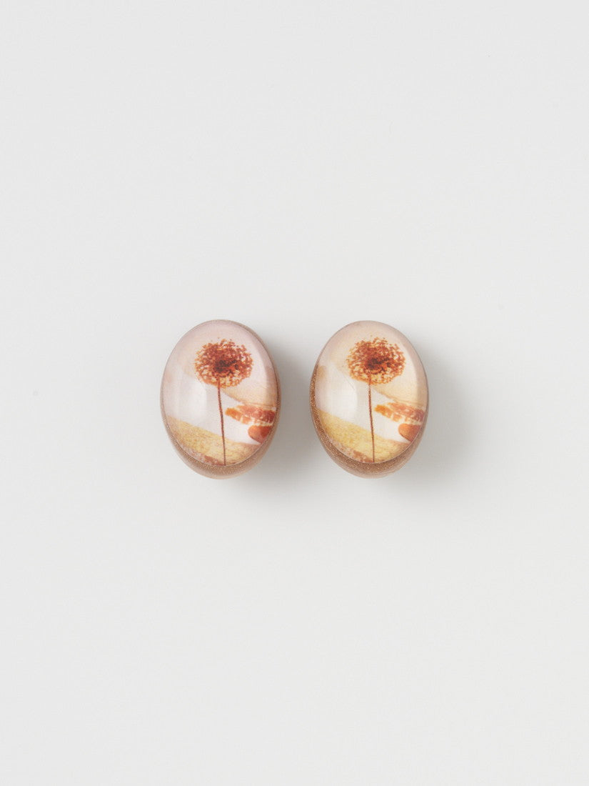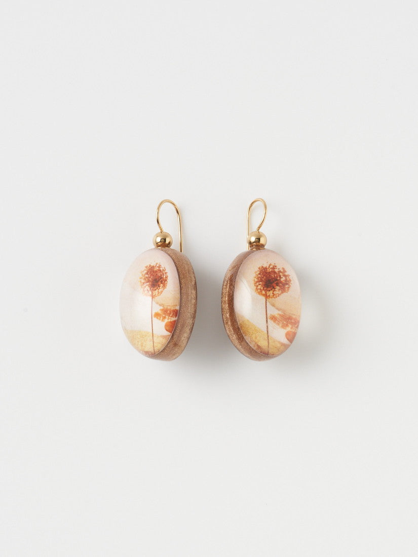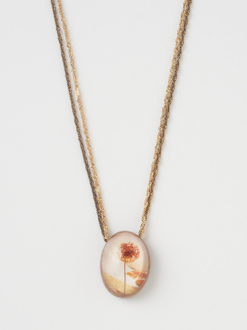 タンポポや植物のモチーフがゴールドレジンに映し出され、儚くも魅力的な輝きを放つジュエリーを生み出しています。