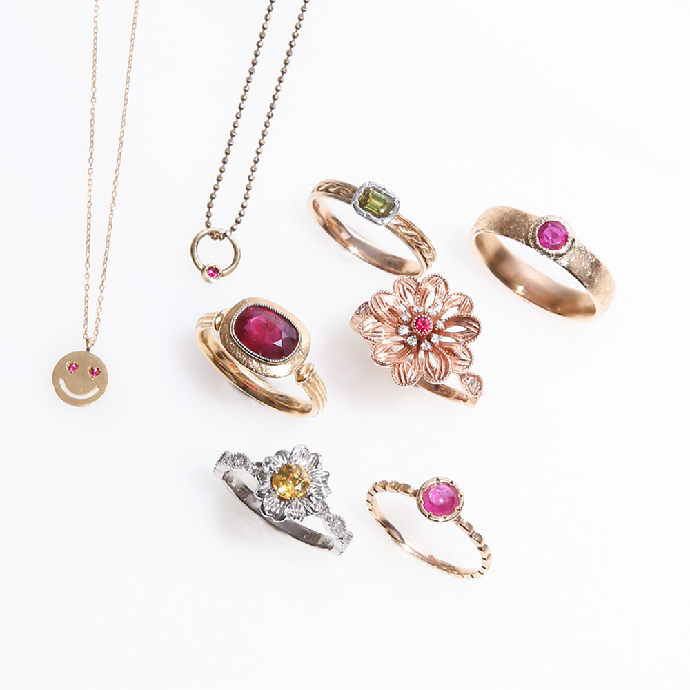 日本のクリエイタージュエリーをセレクトするdrama H.P.FRANCEのラインナップから、各月の誕生石ジュエリーをピックアップする本企画。drama H.P.FRANCEのショップスタッフによる、7月の誕生石『ルビー』『スフェーン』を用いたおすすめコーディネートをご紹介いたします。
