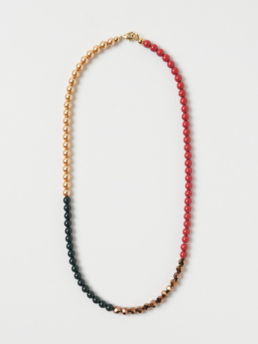 「人が身につけてこそ本当のジュエリーである」という思想を元に、身に付けた人も楽しめるアートとして、個性的なネックレスを展開してきたflorian(フローリアン)。 2024年秋冬コレクションは、落ち着いたグリーンを中心に、優しく朗らかな秋のムードを演出します。 ゴールドやレッド、ブラウンのウッドビーズをミックスしたスタイルが、エレガントからナチュラルまでどんなコーデにもフィット。 さらに、蛍光イエローのファンキーなスタイルでパンチを加え、 アクセントも楽しめます。 小さなサイズからアイロニックな大きなサイズまで、遊び心を忘れずに!