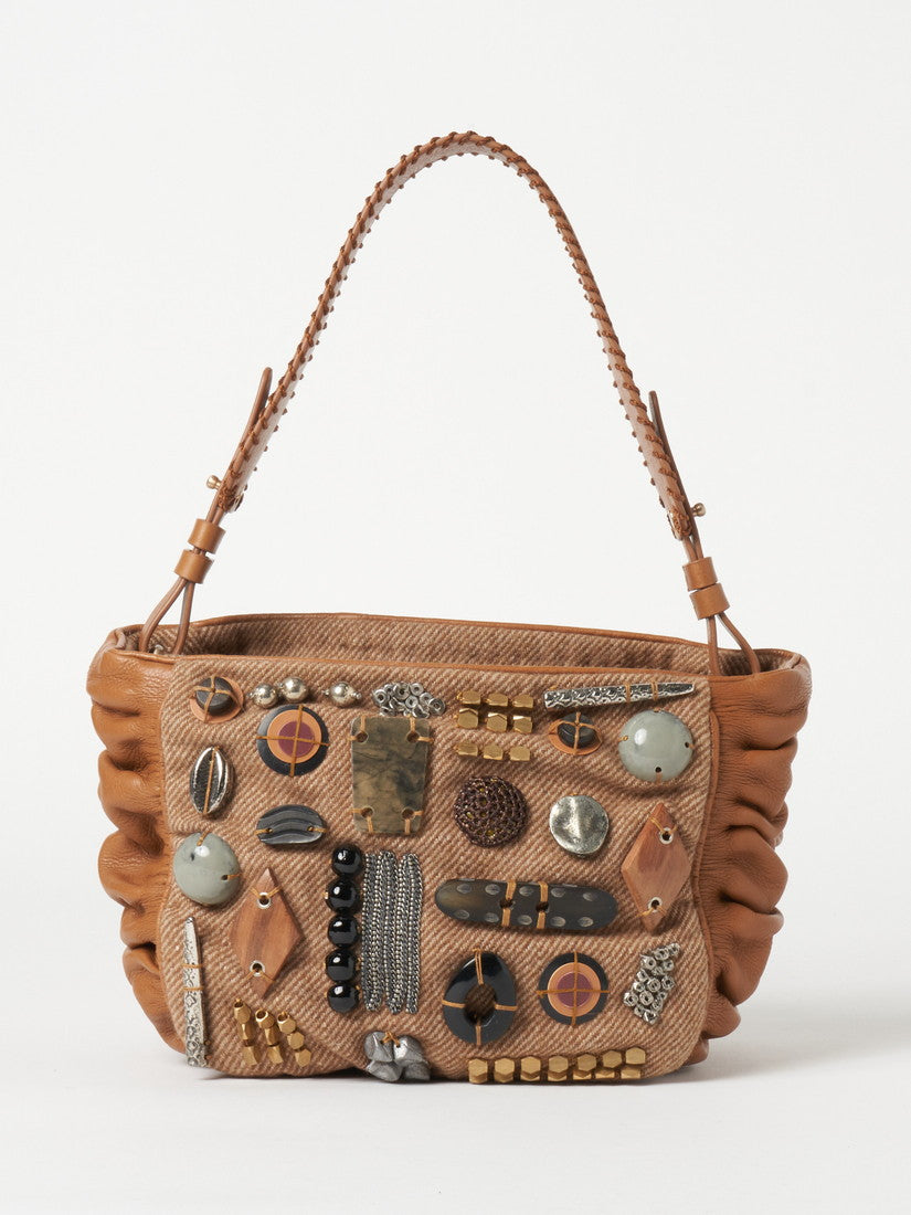 複雑に組み合わされるカラーパレットや様々な素材が織りなす存在感は、バッグの概念を超え絵画のように表情豊か。
