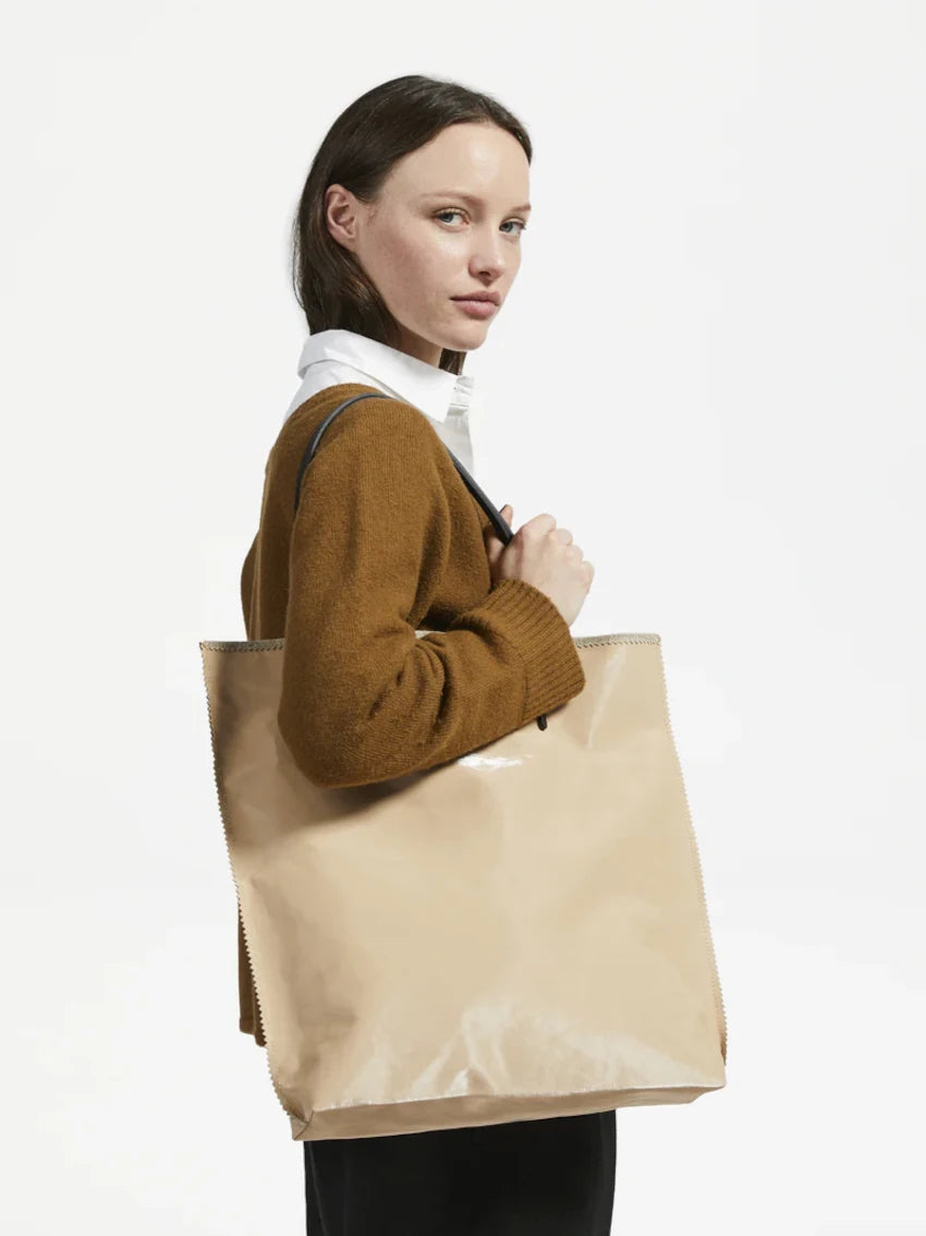 天然のリネンにポリウレタンをコーティングした、ジャックゴムの人気シリーズ。 軽さと耐久性と耐水性を備えつつ、レザーやゴールドメタルのディティールがよりシックな仕上がり。
