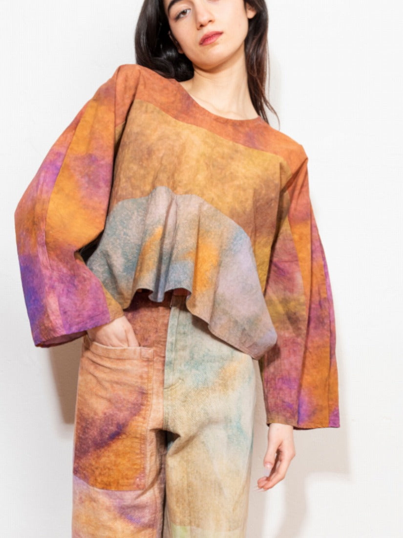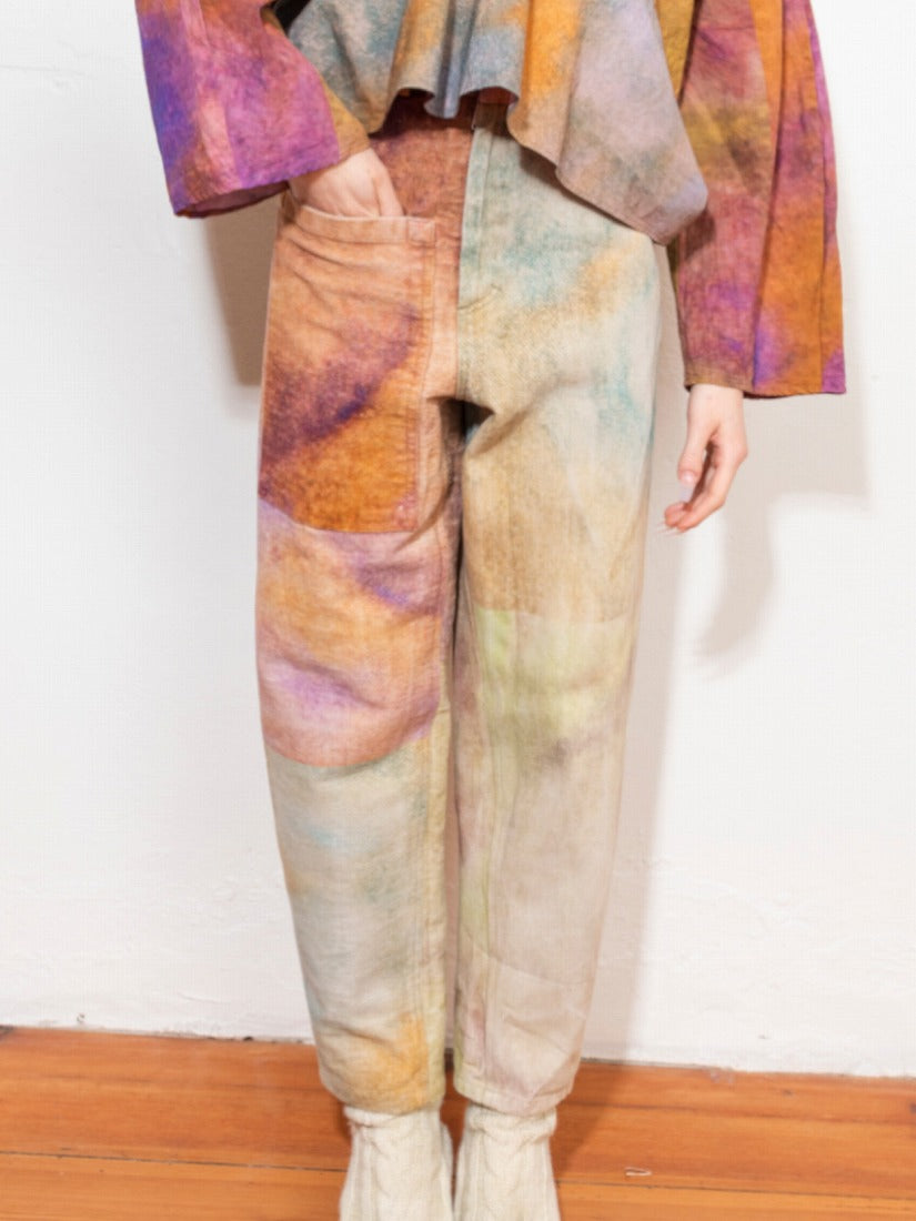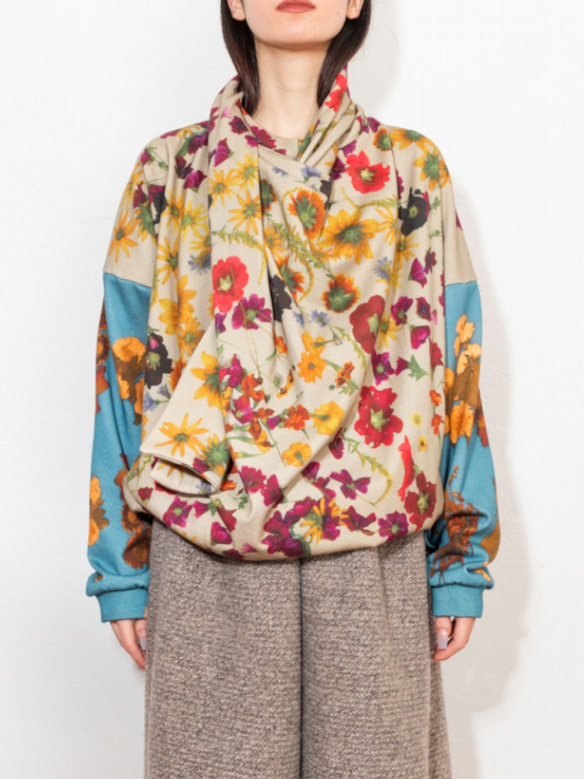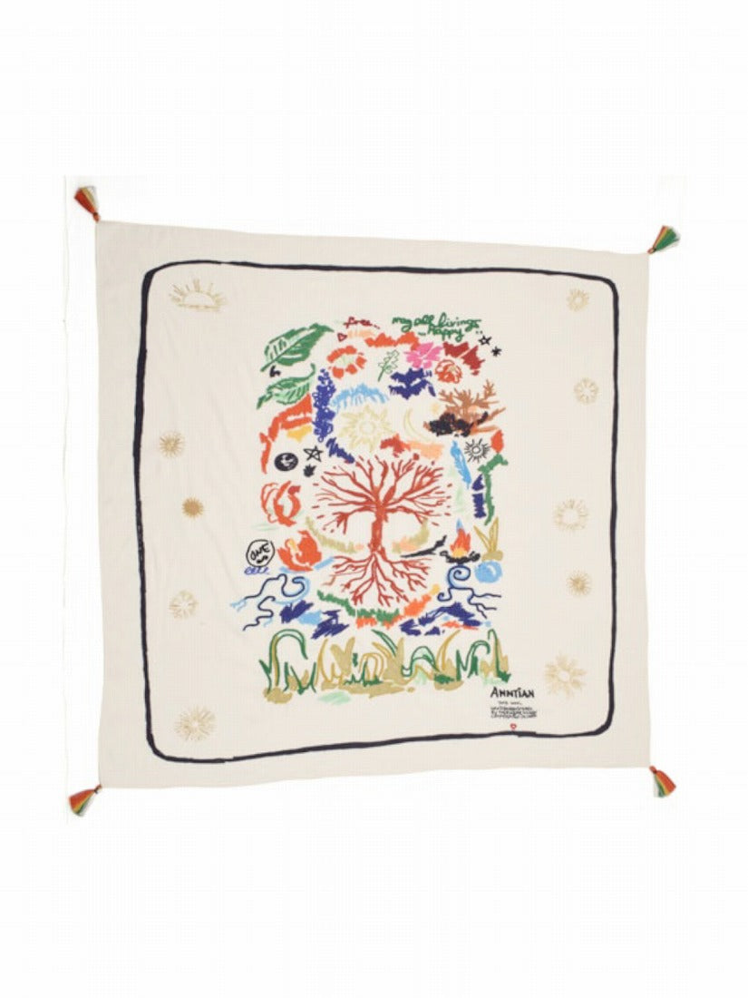 古着のウールのスカーフに刺繍を施し、組み立てなおしたり、