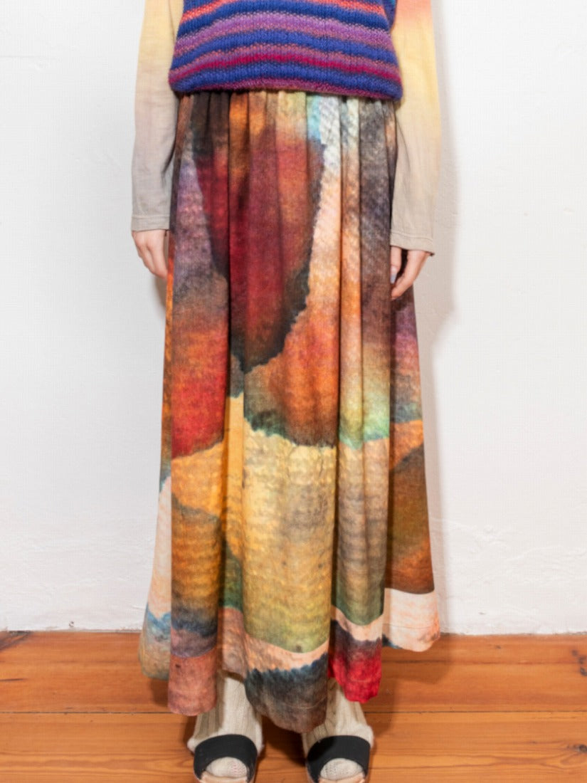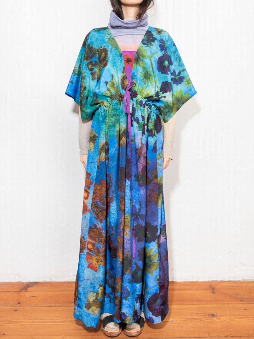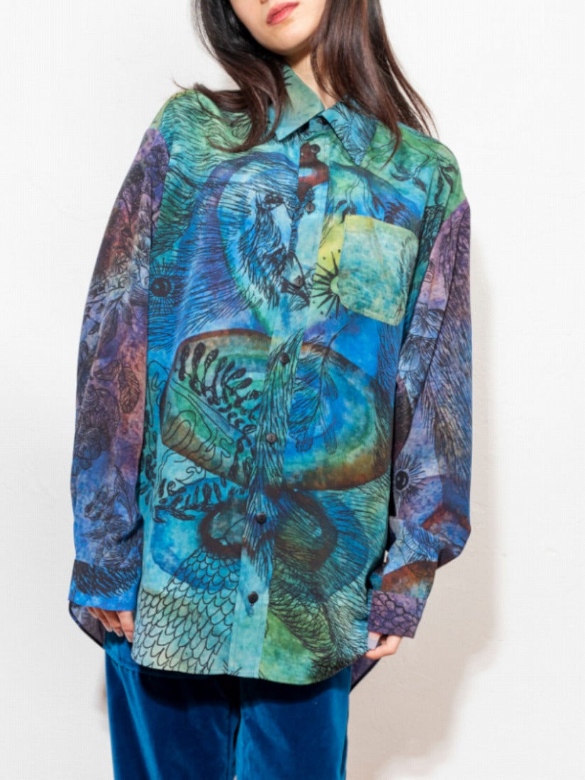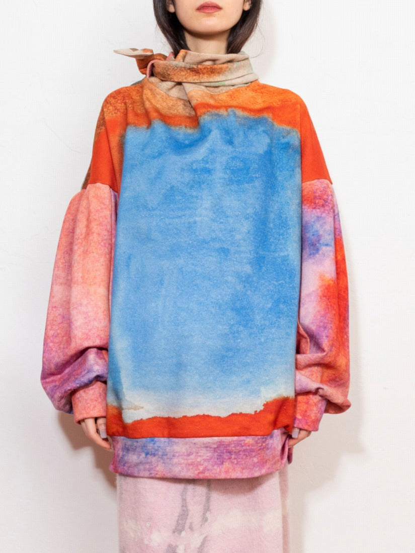 古着のウールのスカーフに刺繍を施し、組み立てなおしたり、