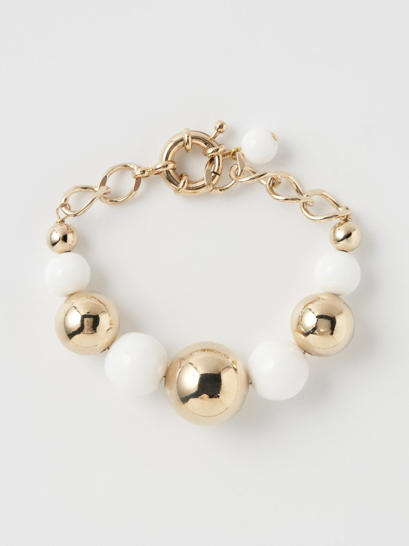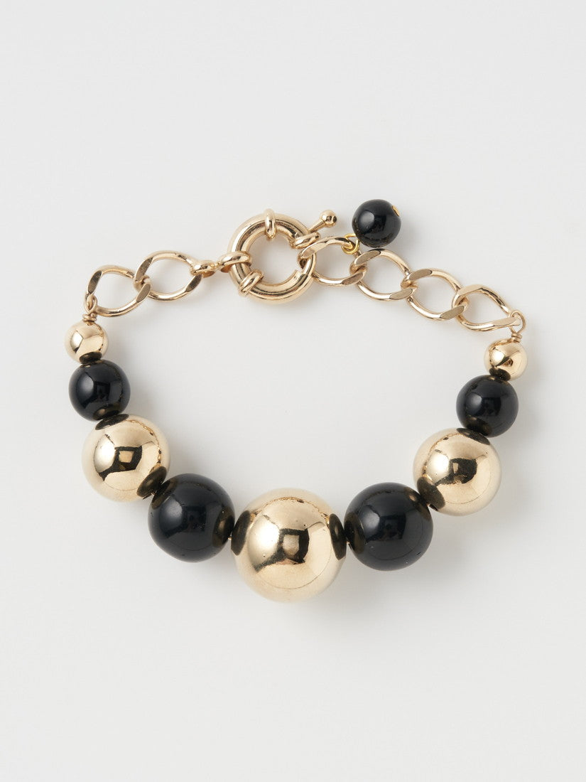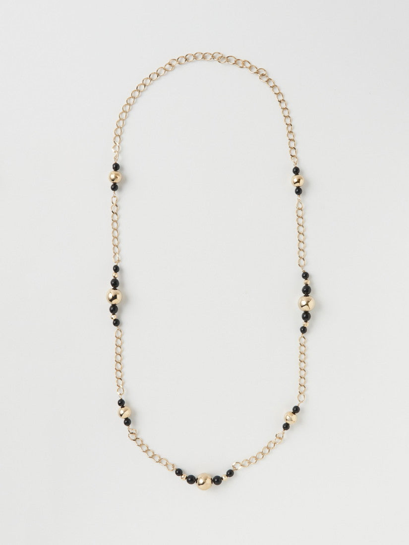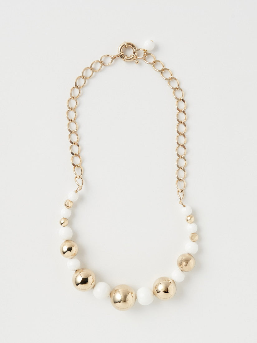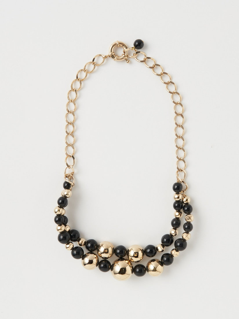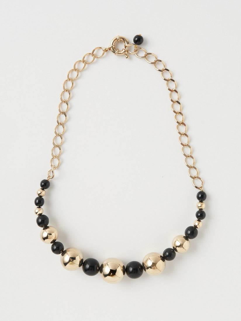 豊かなボリューム感、古色を帯びたメタルビーズとガラスビーズの組み合わせは、ノスタルジーを感じさせることなく、エレガントなアクセサ
