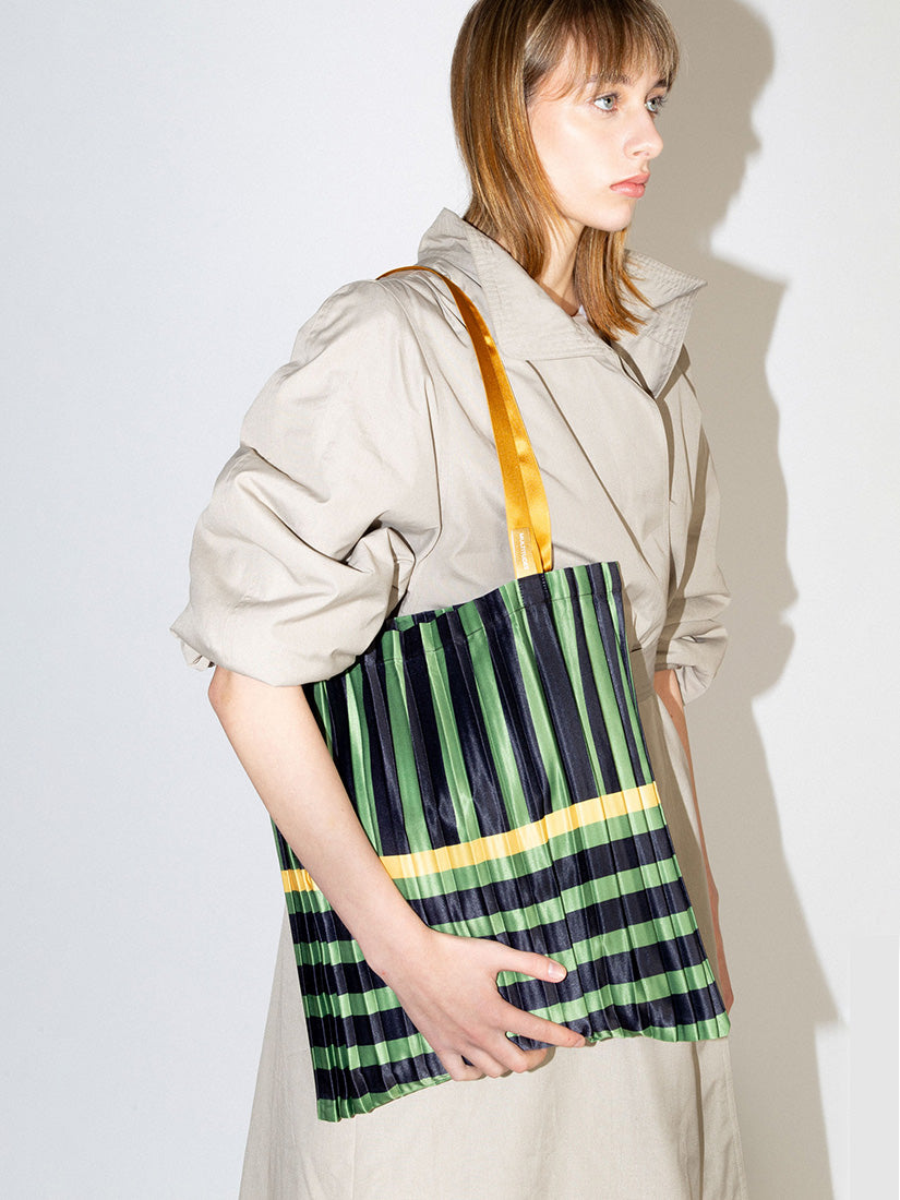 デザインへの情熱とユニークでファッショナブルなアクセサリーを作るというビジョンに突き動かされた、Matteo Carrubba(マテオ・カルッバ)とAngele Tamasoni(アンジェラ・トマゾーニ)がミラノで立ち上げたブランド。プリーツバッグのデザインと生産に特化しており、製品に独特の美学を提供するカラーブロックのグラフィックが特徴です。すべてイタリア製で、最高品質の素材を使用しており、伝統的な職人技やディテールへのこだわりが詰まっています。