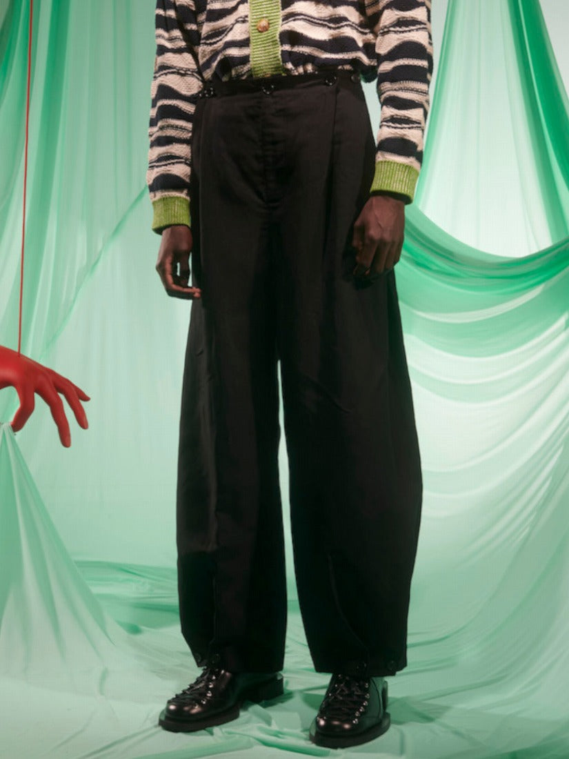 The Orchestra of the Soft Assistance は、流れるようなシルエット、変幻自在のパターン、そしてテーマを体現する多用途な衣服が特徴です。