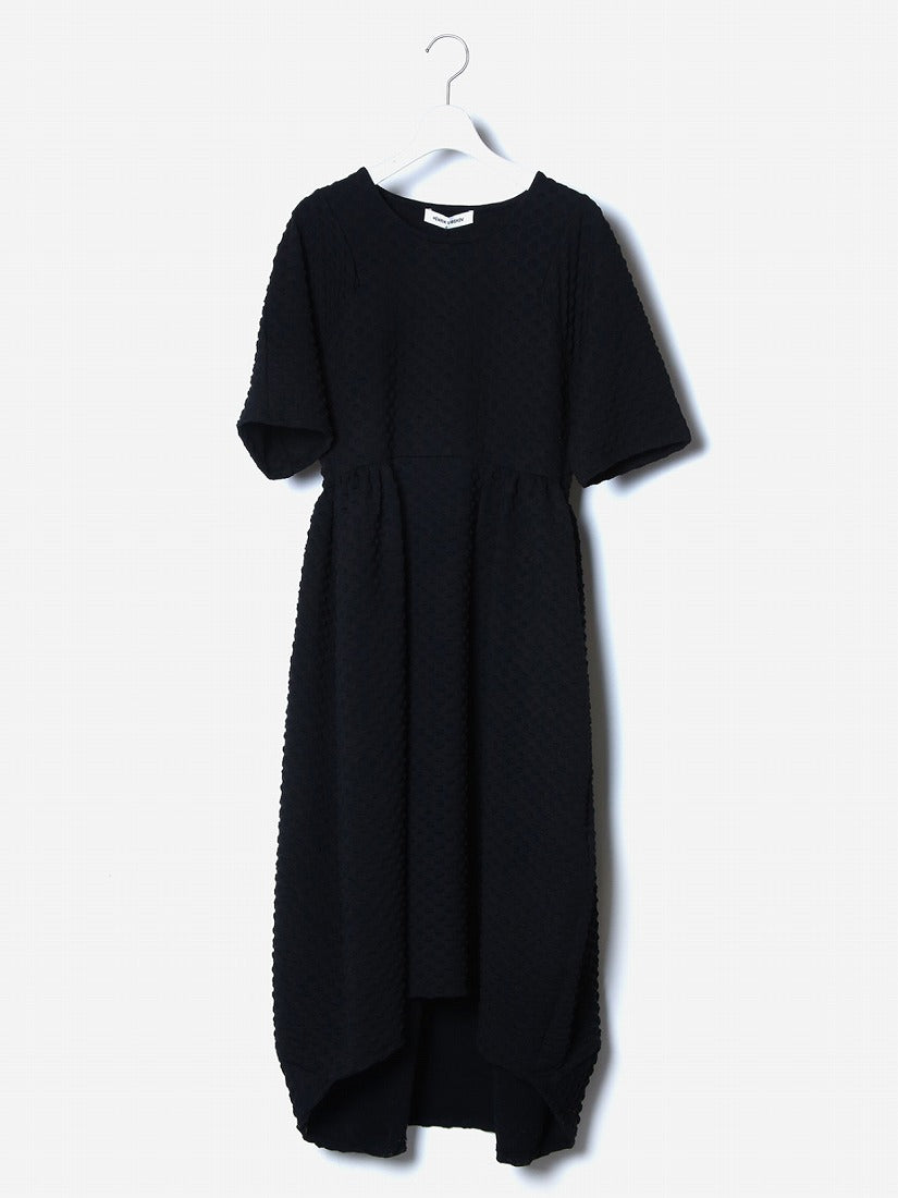 波打つような柔らかなアメーバーのシルエットや、滑空する哺乳類の皮膚を再解釈し、衣服を正方形にフィットさせ、身体に形を与え、余分な部分をサイドに沿わせます。
