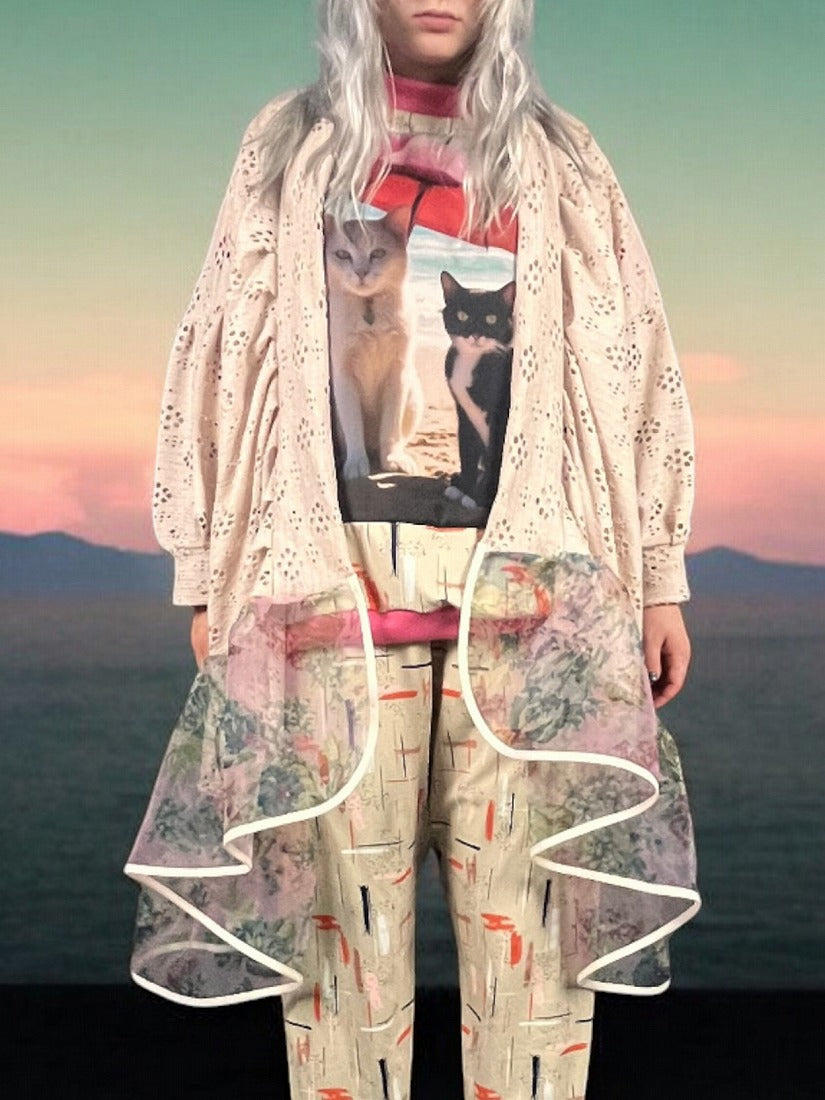 ようこそTATA CHRISTIANEのSpring Summer 2025 コレクションへ。 猫のように生きる哲学をテーマとした、“Do It Like a Cat!”。 ユーモアを少し加え、型にはまらない態度と揺るぎないクールさを取り入れたこのコレクションは、壮大で、恐れを知らず、さりげなくもシックなスタイルを追求します。 Spring Summer 2025 コレクションは、コントラストを際立たせ、同時に調和をもたらし、あらゆる猫が体現するクールで自信に満ち、少しいたずらな雰囲気を、着られるアートに変換していきます。街中を歩き回るときも、自宅でくつろいでいるときも、必ず覚えておいてほしい —Do It Like a Cat— 強く、楽しく、そして素晴らしく生きることを。 さあ、遊び心に満ちた幻想的なコレクションに足を踏みいれて。 Spring Summer 2025、Do It Like a Cat!