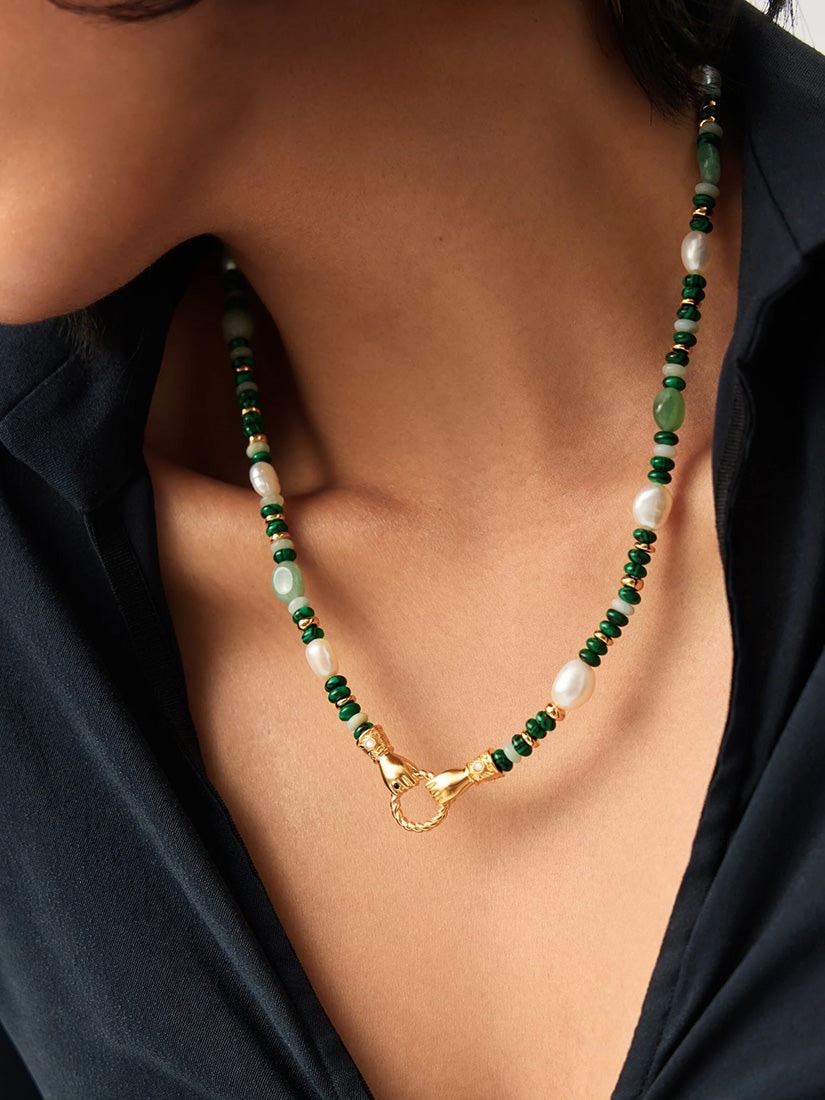 MISSOMA(ミッソマ)のゴールドの手のモチーフが印象的な”In Good Hands”シリーズが、Harris Reed x Missomaのコラボデザインとして新登場。グリーンの石使いとパールのコントラストで、更なる存在感を引き立てます。腕元には、シンボリックなジュエリーに負けないVIDA+(ヴィーダプラス)の時計を添えて。