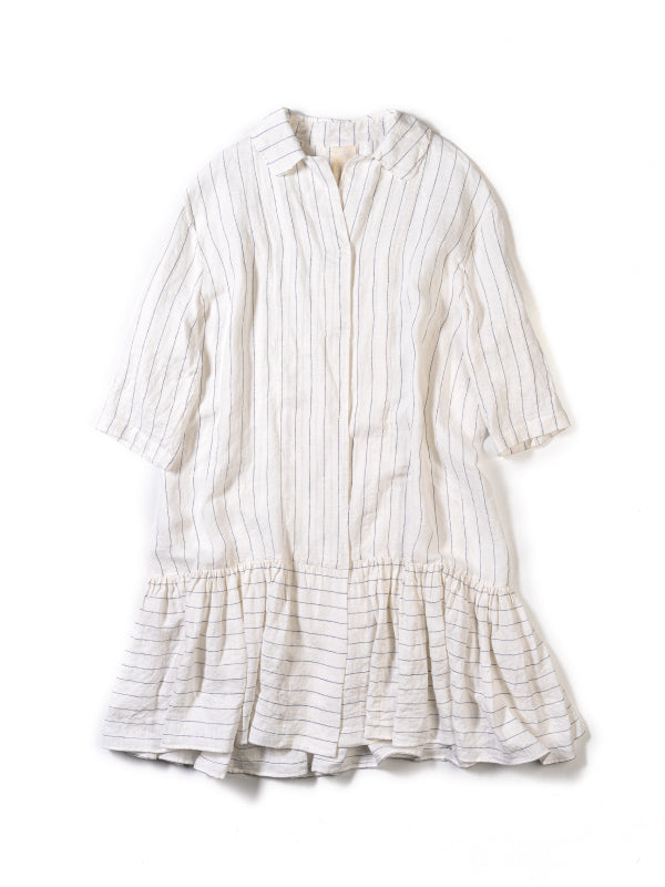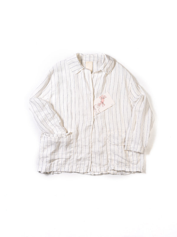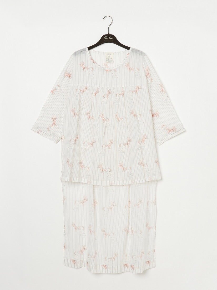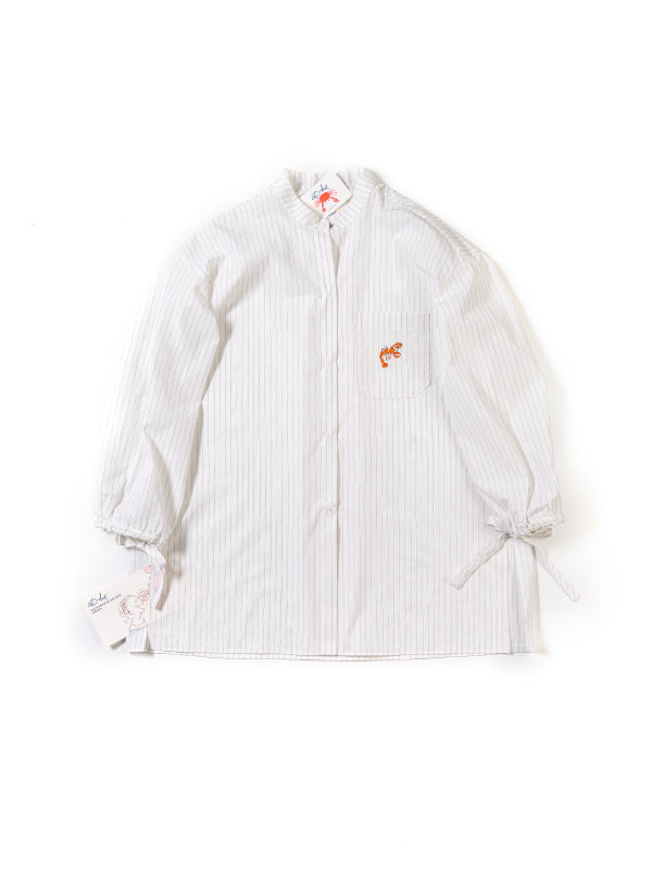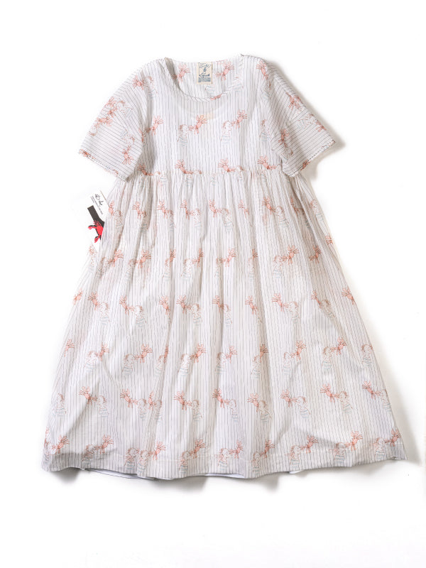 メインコレクション第三弾は「GRAPHIC STUDIO I」。デザイナーの一人であり、画家・グラフィックデザイナーでもあるアルフレド・オルメドによる図案を元にし、アートのような様々な手法によって生地の上で表現をする実験的なアイテムが揃うGRAPHIC STUDIOのラインアップ。今シーズンのテーマである、カニに鼻をつままれた少年のプリントをメインにリンクさせた、ノートの線や水兵の服を思わせるボーダーの素材を使ったシリーズ。