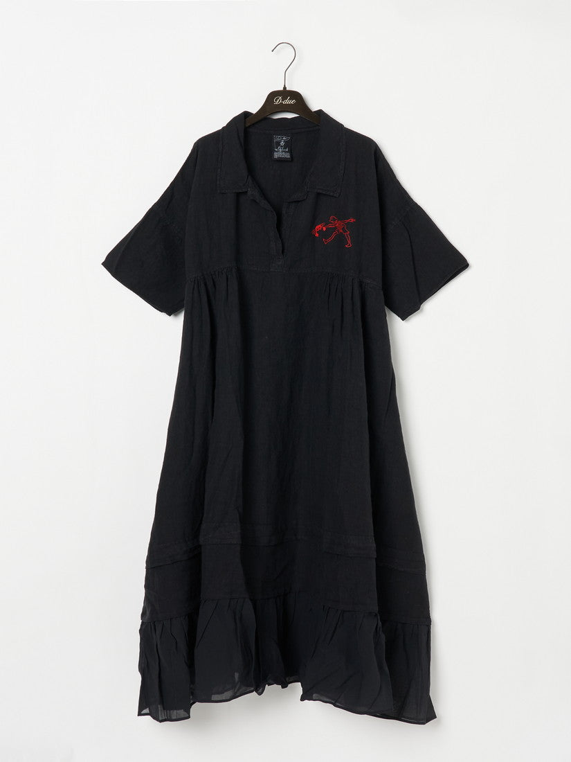 伝統的なガリシアのスタイルとして、農家の家庭で使われるホームファブリックであるリネン。そこには持ち主のイニシャルや、様々な文様が刺繍されている。今回入荷するのは、そうした、とても人と親密なものとしての衣服を目指したMaisonシリーズ。同シリーズは人気のリネンの素材に製品染めをかけて柔らかな風合いに仕上げ、日々の生活に寄り添ってくれるような優しい印象に仕上がっていおり、今シーズンはイメージソースであるカニやエビ、子供たちが随所に刺繍されている。