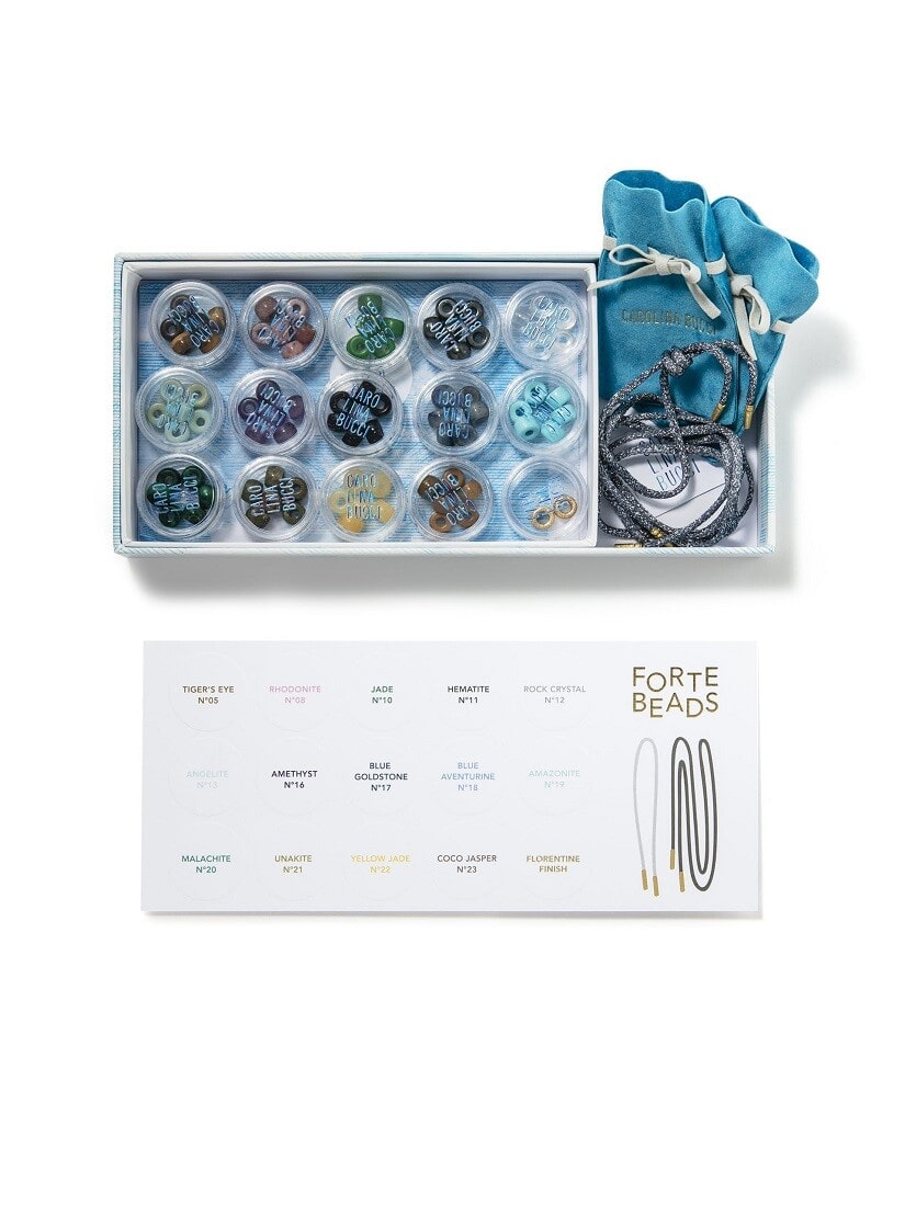 彼女のファーストコレクションであり、代表作であるコレクションLUCKYは、18Kゴールドチェーンとシルクコードを編み上げたミサンガタイプのブレスレット。 幼い頃に海辺で交わした友情の証、コットンのフレンドシップブレスレットの淡い記憶とともに、5色からスタートしたミサンガコレクションは、今や多彩なカラーバリエーションへと広がり、ラッキーチャームが揺れるカラフルで現代モードなお守りブレスレットとして人気を集めています。