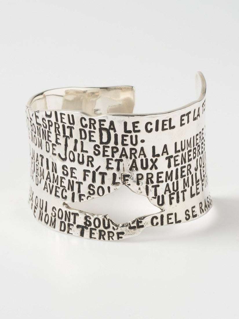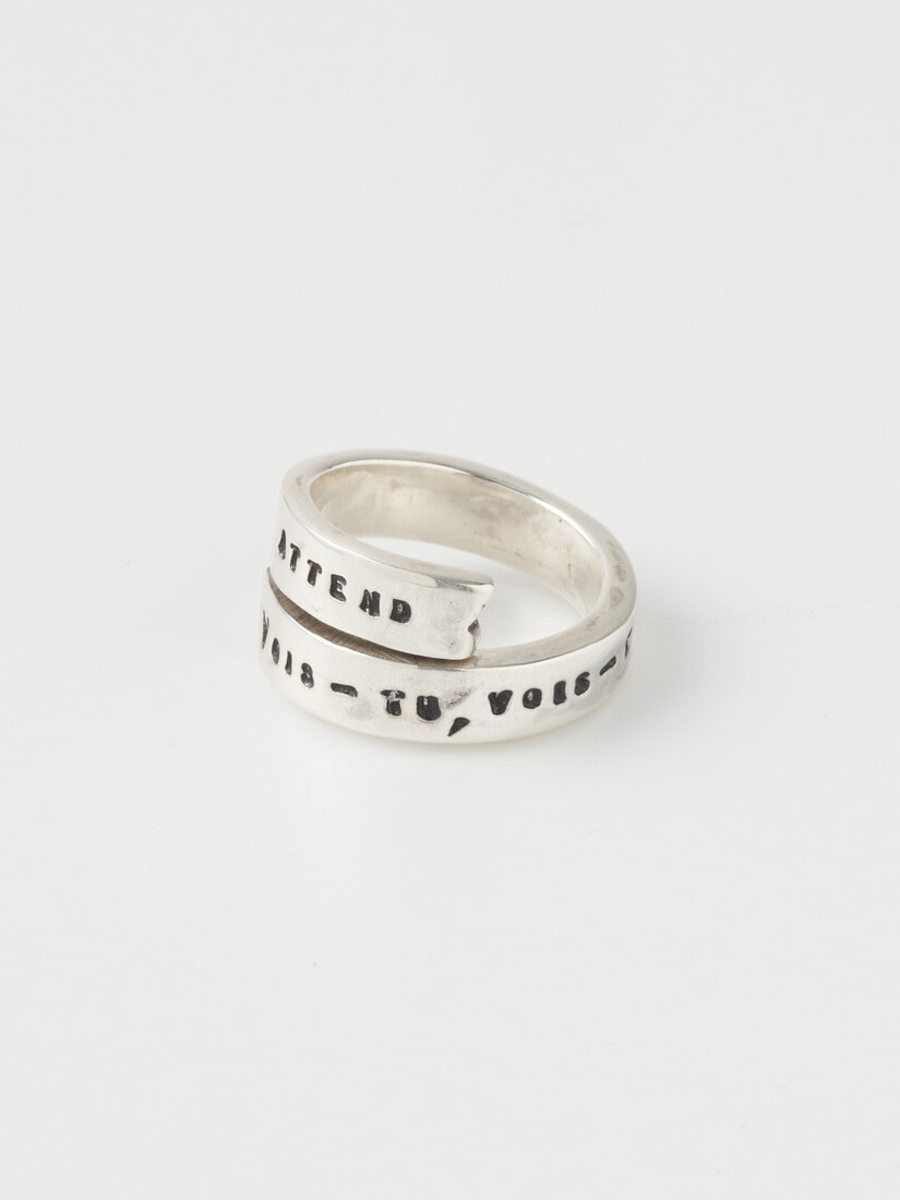 口下手だったセルジュは自分の感情や気持ちを、言葉で伝える代わりにジュエリーに刻んでいきました。「昨日は電話をくれてありがとう」と刻印したメタル片を、友人に贈ることもありました。 彼が初めて作った指輪は、二つの輪がいびつにくっついているようなデザインのもので、内側には「Je t’aime(愛してる)」と刻まれていました。うまく回らないけれど、とても固く溶接された指輪が、まるで相手との関係性を表しているかのように。