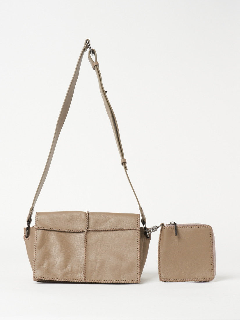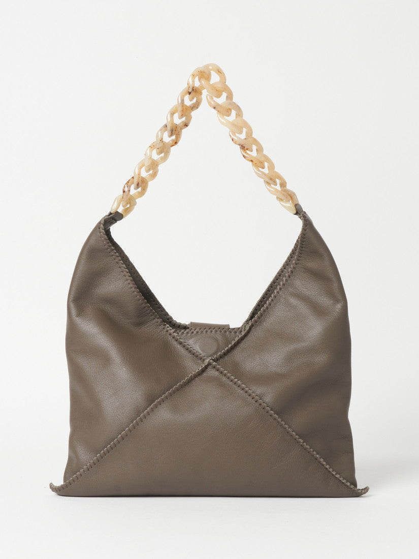 3枚のレザーをハンドステッチで丁寧に縫い合わせたトライアングル型の「TRIO」