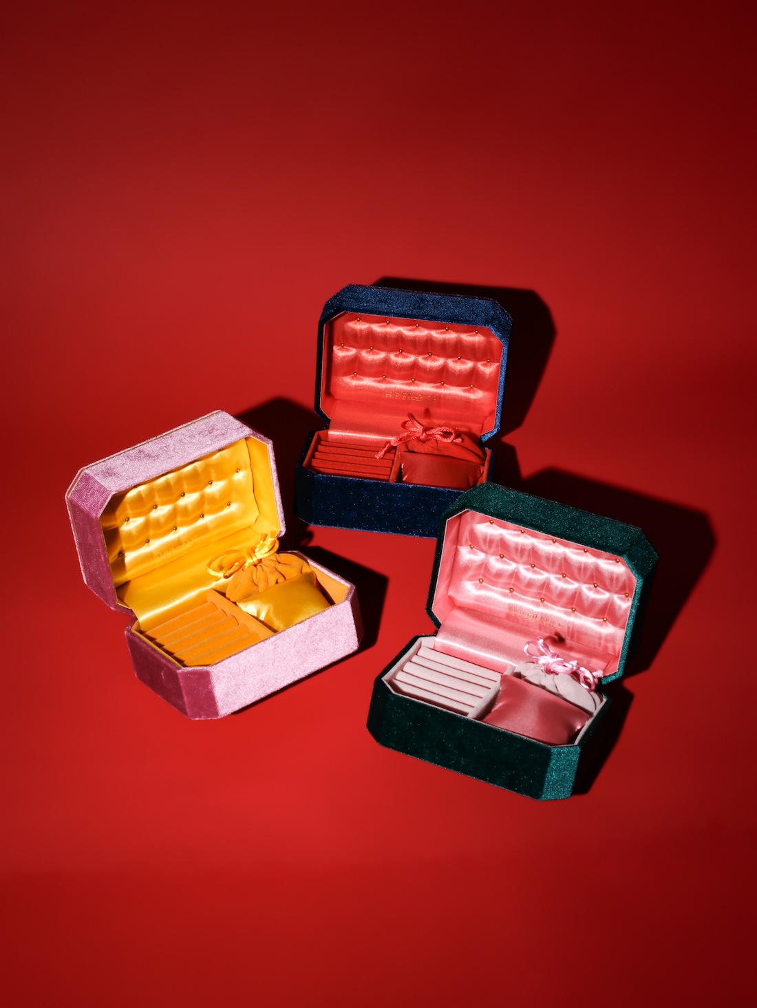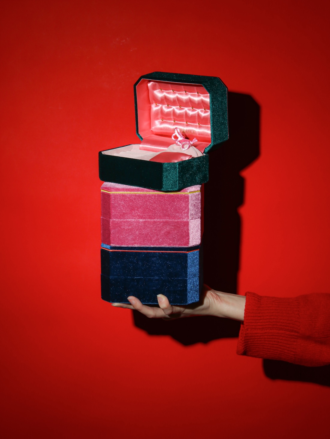 50〜60年代ヨーロッパのアンティークから着想を得たデザインに、外と内側で異なるバイカラーの配色が、開けた瞬間の高揚を演出する。ブレスレットやリング、ネックレスまで、お気に入りのジュエリーを飾るようにしまい、眺めて楽しむ時間もスペシャルに。“自分だけのときめき”を映す、世界にひとつの宝箱。
