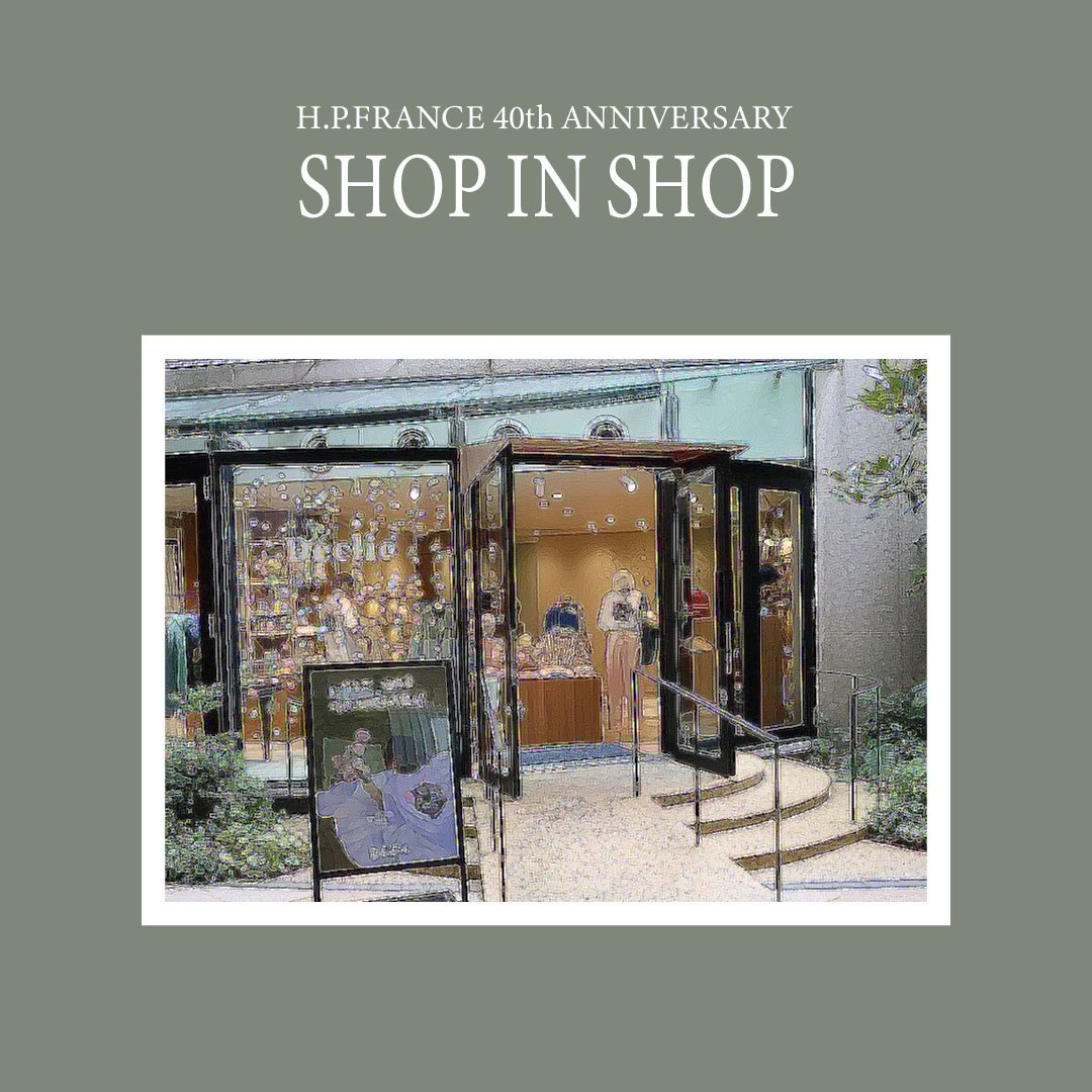 普段はお取り扱いのないブランドも含め、H.P.FRANCEが誇る40周年の特別なコレクションが一堂に揃うイベントを開催。ウィンドーや店内はアニバーサリー仕様のスペシャルディスプレイに。“H.P.LOVE”の世界を五感で感じられる特別な空間を、是非お楽しみください。