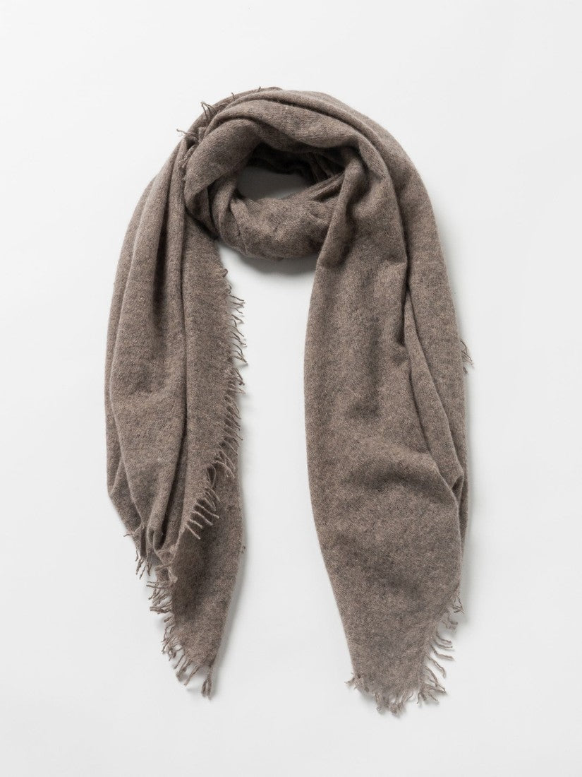 ブランドのアイコン的アイテムである、ニードルパンチの縁取りが印象的なショール。手作りのすばらしさが具現化されたような、ネパールの職人たちによってひとつひとつ繊細に織られたカシミアのショールは縁取りも彼らの手によってニードルパンチで丁寧にフェルト仕上げされ、ボディーとのコントラストが美しいカラーを使用したボーダーになっています。ネパールの女性の伝統的な技術と知識を使用して手作りされたユニークで非常にアーチザナルで高品質な作品です。