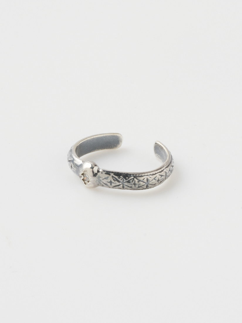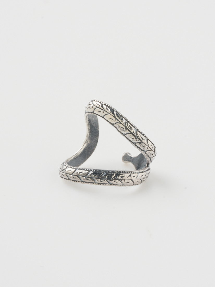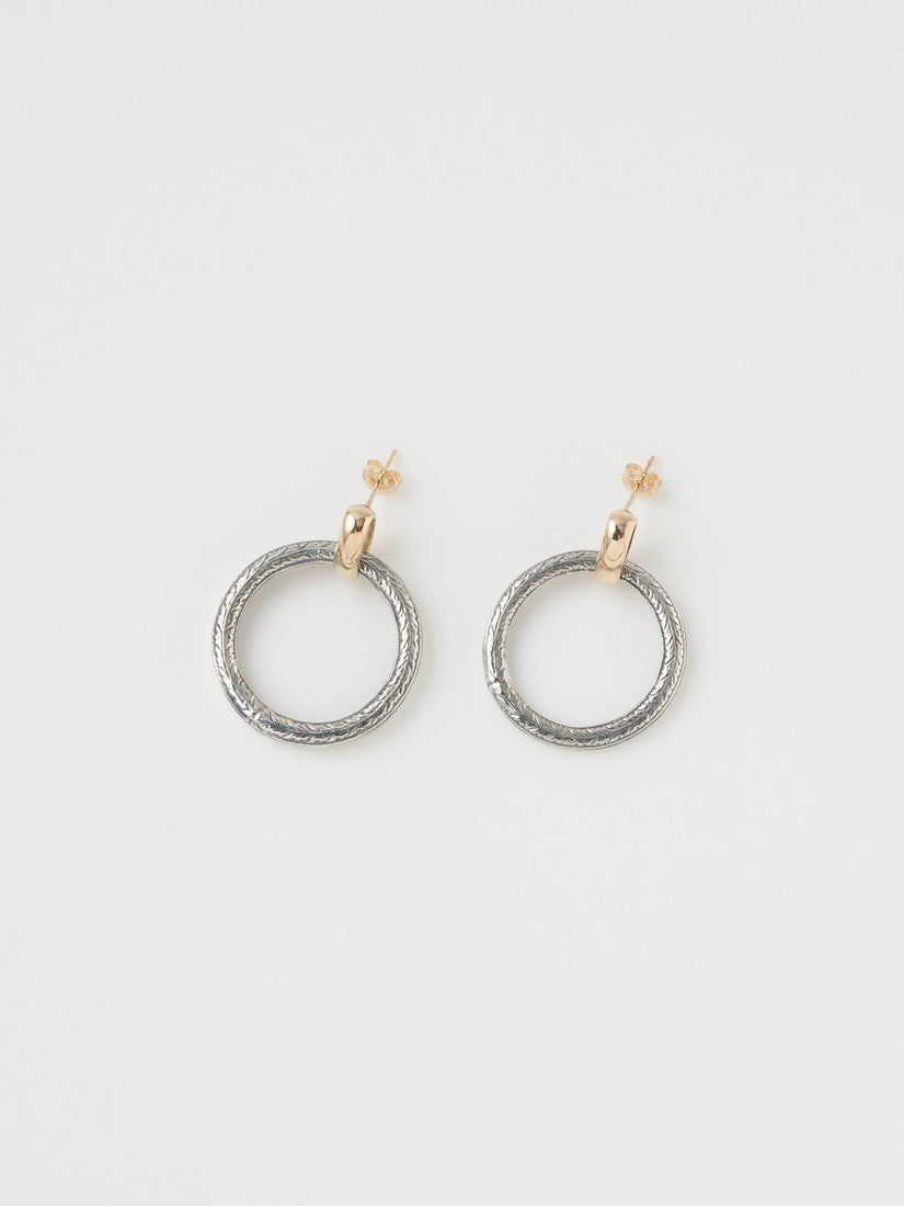 今夏最も注目したいのは、リクエストも非常に多かったイヤーカフ。大小様々な大きさで入荷致します。アーカイブのリングともピッタリな彫刻のような細かな柄の細工は、光が当たるとキラキラと輝き、まるで宝石を散りばめたかのような美しい輝きを放ちます。ゴールドの細身のイヤーカフはシルバーだけだとハードになりがちな組み合わせに柔らかさを与えてくれるので、アクセントとして入れるだけで、コーディネートが一段と華やかで上品に仕上がります。ピアスホールがある方には是非お揃いの細工が入ったピアスを。こちらもゴールドの留め具が使用されています。