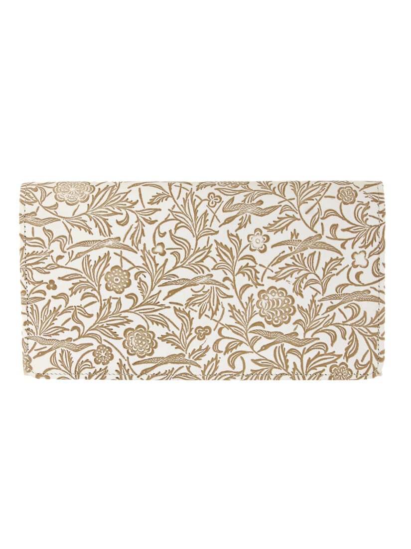 漆の仕上げでもたらされたつやめきが、無垢な白のなめし革を引き立てる文庫革。古くは播州姫路より伝わる由緒正しき伝統工芸を、向島の職人たちが独自の手法を取り入れながら受け継いだ、唯一無二の手しごと品だ。