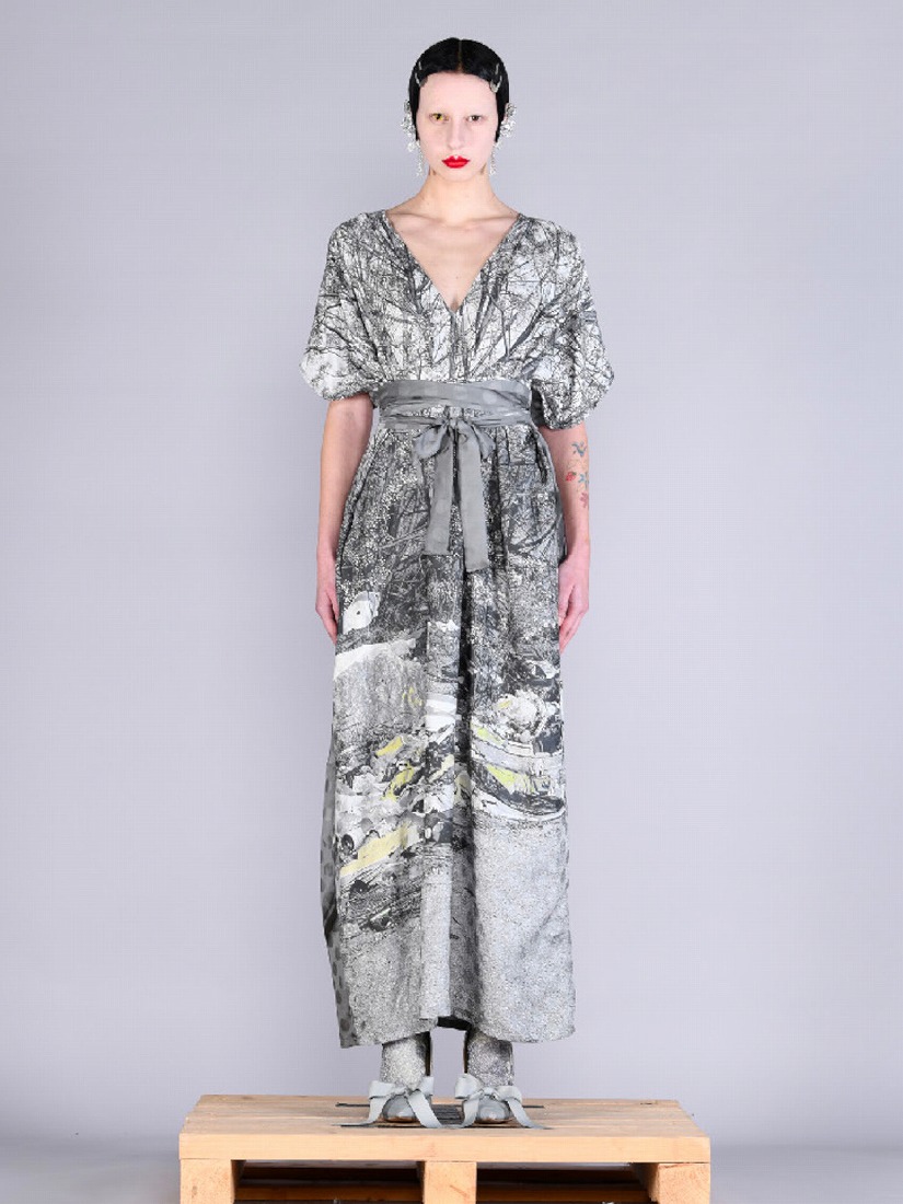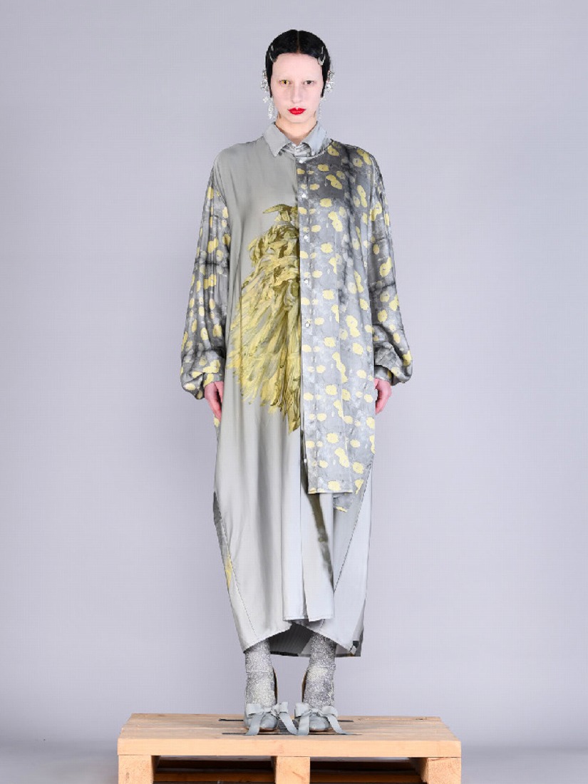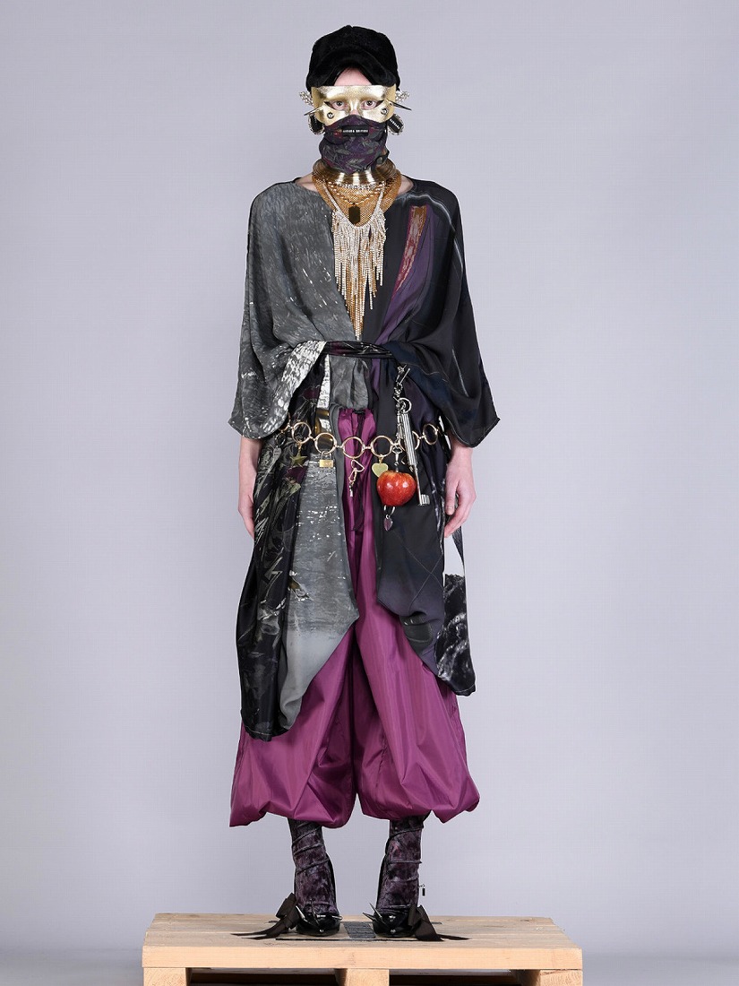 広範なリサーチとディテールへの厳格なこだわりによって、彼女とイタリアの職人チームは、高品質のファブリックと革新的なビジョンのコレクションを提供しています。 商業的な側面と、アーティスティックかつコンセプチュアルな本質をうまく融合させながら それぞれの衣服に 生と死、下品と良識、グロテスクと親しみやすさの間のバランスを、非常に独創的なデザインで実現しています。