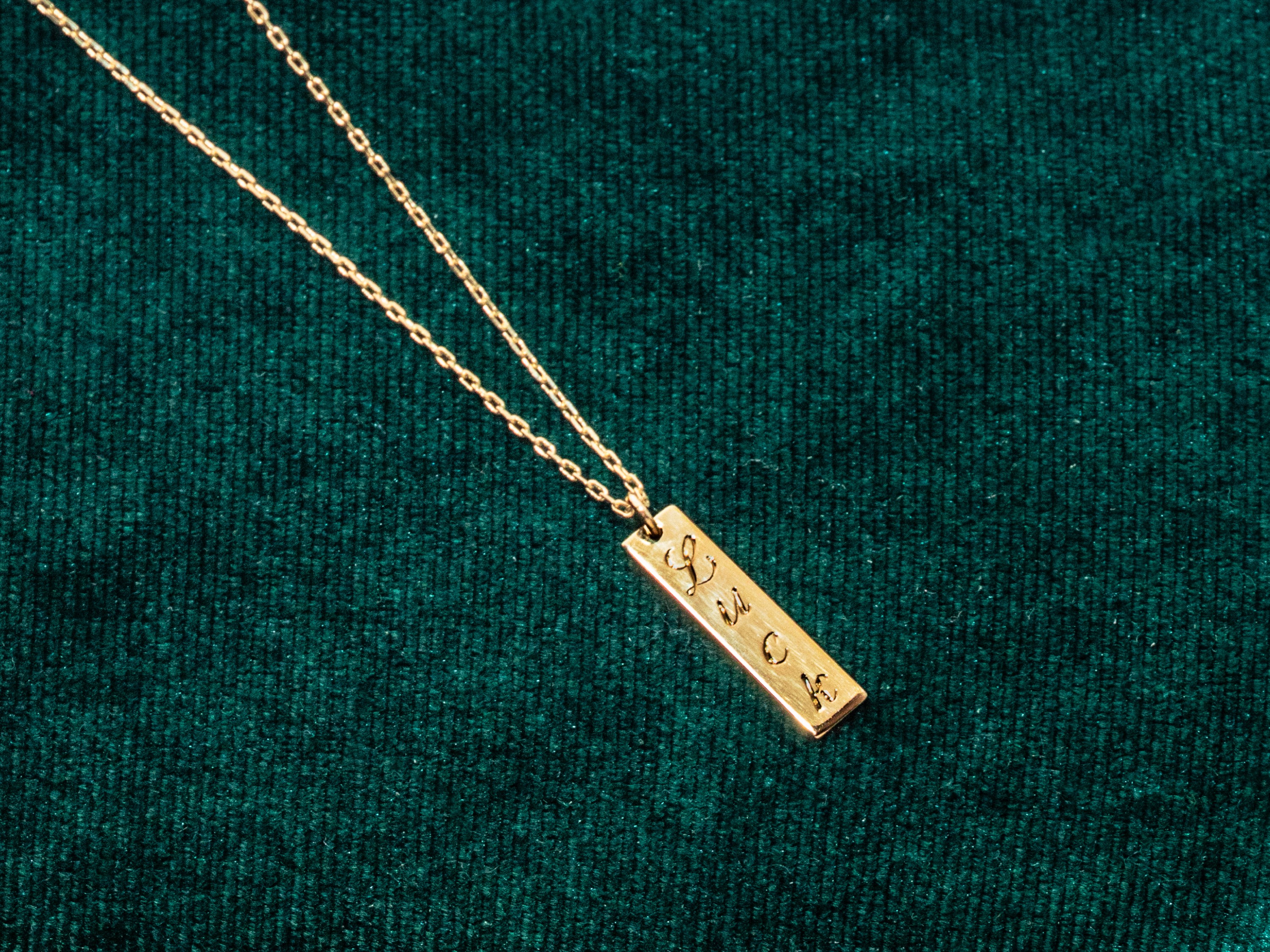 Sweet Pea(スイート ピー)からは、18Kゴールドの繊細なチェーンに、縦長プレートを組み合わせたミニマルなネックレス。プレートに"LUCK(幸運)”の文字を刻印。これからの人生に穏やかな光が訪れるようにという願いを込めて。