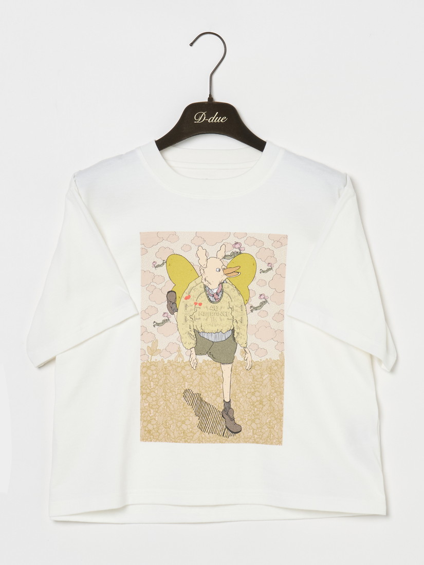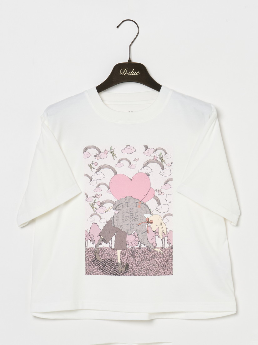ショート丈のTシャツは40周年のイラストのウェアを着たキャラクター達のプリントが施されています。半袖と長袖をラインナップ。