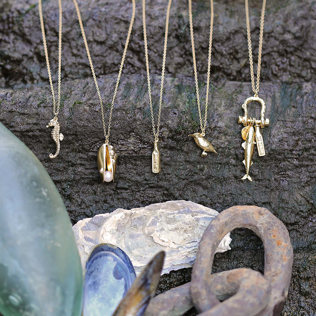 また、テムズ川でのお宝探し「マッドラーキング」からもインスピレーションを受け、Alex Monroeアトリエ近くの河岸で見つけられるかもしれない“小さな宝物”を、ミニチュアのように繊細に描き出したジュエリーにも注目。