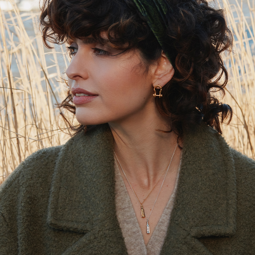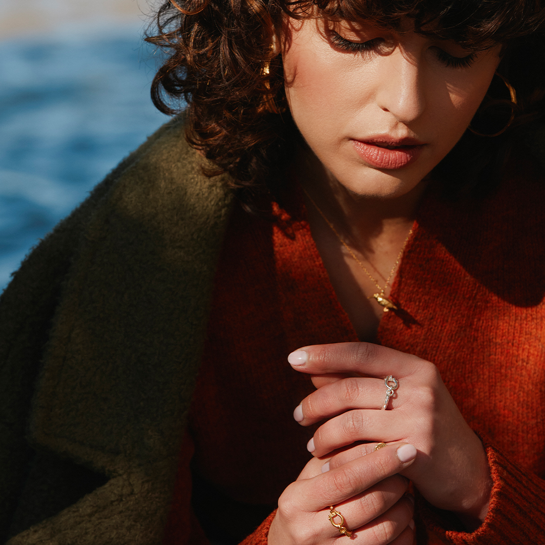 イギリスの運河沿いの静かな散歩道を舞台に、川から海岸へと続く風景の中で出会える植物や生き物、錆びついた波止場のチェーンなど、時を重ねた“水辺の記憶”をジュエリーで表現しています。