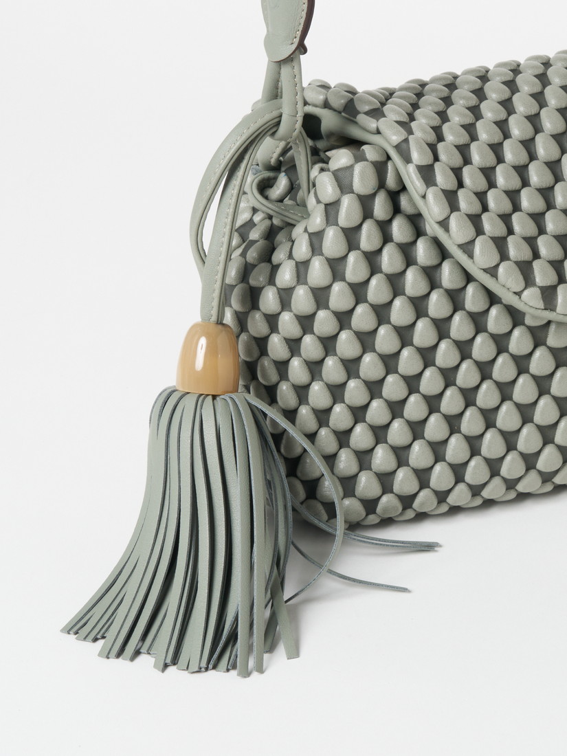 タッセルと、丸みを帯びたフラップのカッティングが、TISSA FONTANEDAらしい柔らかな表情を添えています。