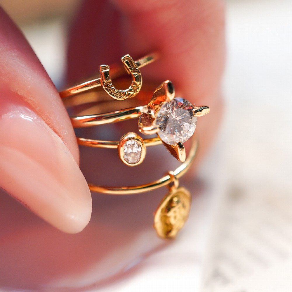 今回のポップアップでは、リング・ネックレス・ピアスなど多彩なアイテムをラインナップ。特に、細身のK18ゴールドラインやダイヤモンドセッティングのピースは、重ね着けにもおすすめで、装いの幅を広げるキーアイテムとしてお楽しみいただけます。