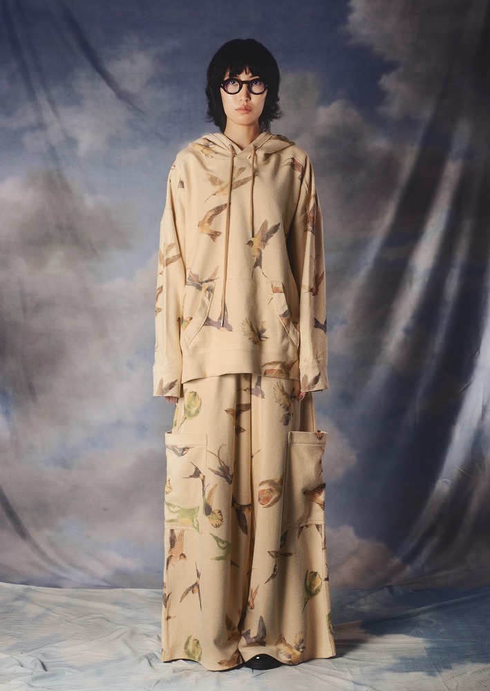 2026年春夏コレクションは、KA WA KEYの2人のデザイナーのひとりであるKeyの祖父と、かつて彼が飼っていた一羽のスズメからインスピレーションを受けています。祖父は昔、小さな鳥籠の中でスズメを飼っていました。当時の彼は、曲がりくねった道を歩き、野原を越え、甘さと苦さが入り混じる瞬間を追い求めながら、何マイルも歩いていました。